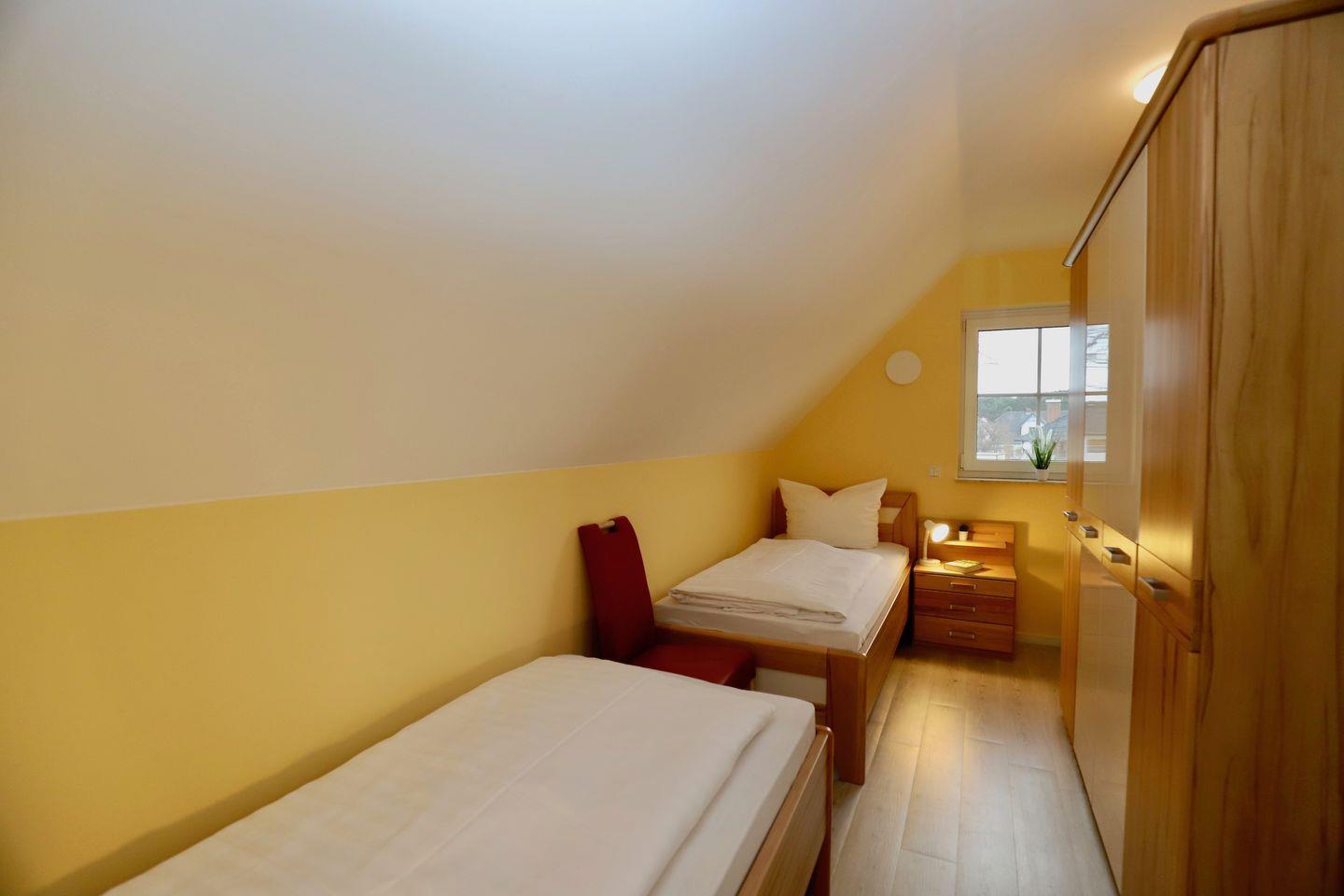 Die zwei hellen Schlafräume sind mit Doppelbett, bzw. 2 Einzelbetten ausgestattet. Hier findet auch ein zusätzliches Kinderreisebett Platz. Kinderreisebett und Kinderhochstuhl stehen Ihnen kostenlos zur Verfügung.