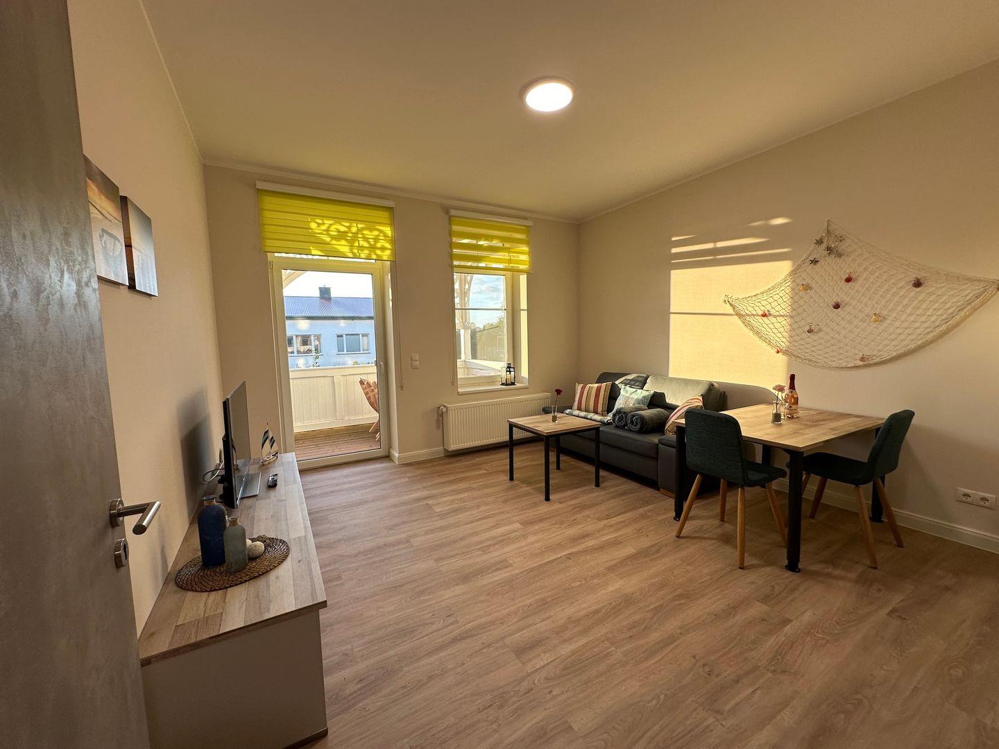 Auf dem großen Balkon mit Gartenmöbeln haben Sie das perfekte Ostseefeeling.