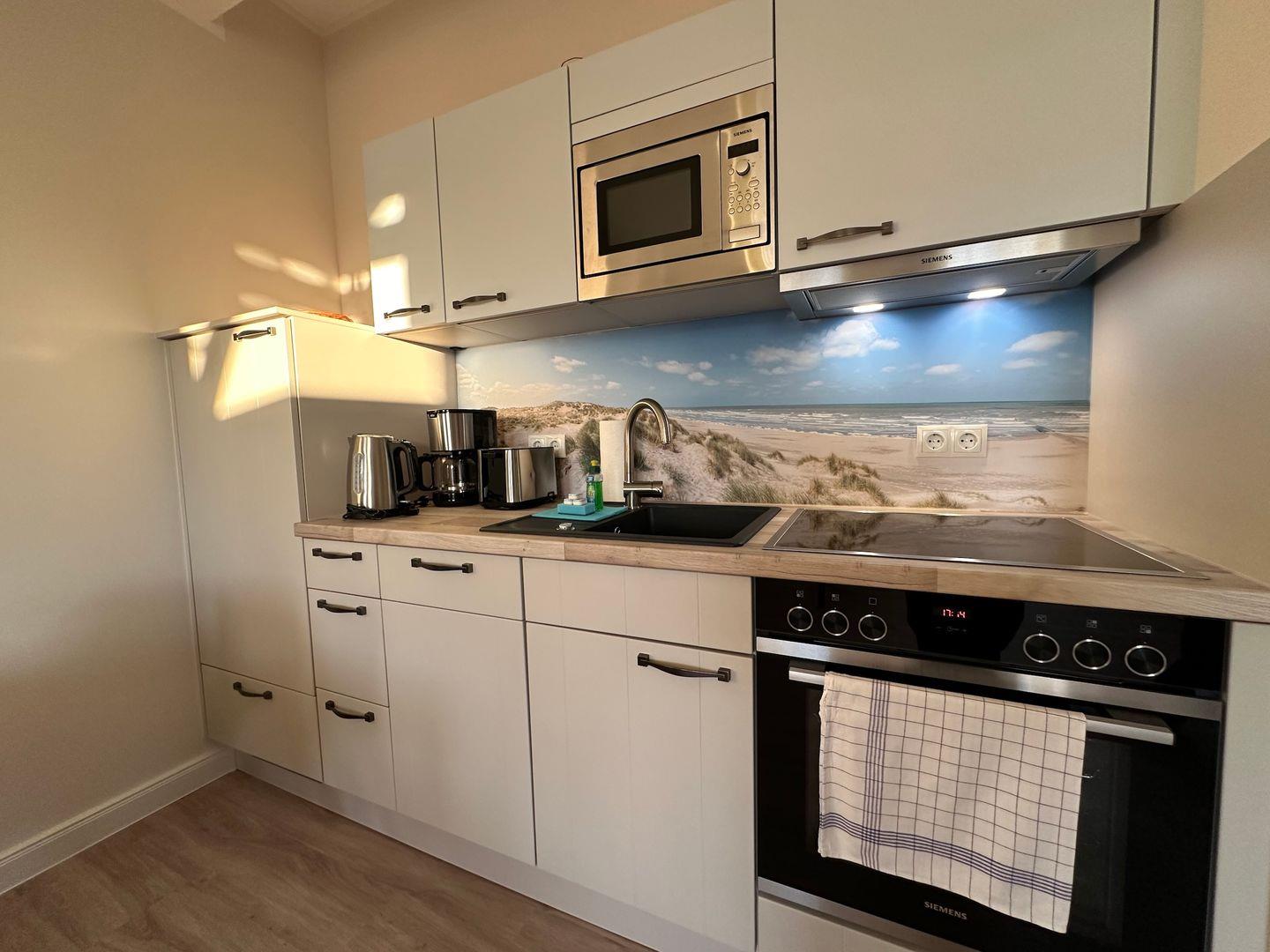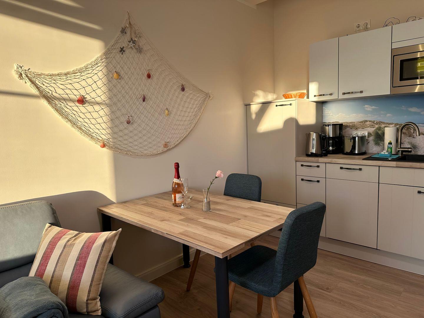 Das Wohnzimmer mit einer gemütlichen Couch bietet Ruhe und Entspannung und ist mit einer Essecke für gemütliche Abende mit der Familie abgerundet. Eine anliegende Küche mit gute Ausstattung, ergänzt den Wohnbereich. Die Spülmaschine erledigt für Sie den Abwasch, während Sie am Strand den Sonnenuntergang genießen können. Das Schlafzimmer mit einem Doppelbett (180cmx200cm) bietet Ihnen erholsame Nächte.