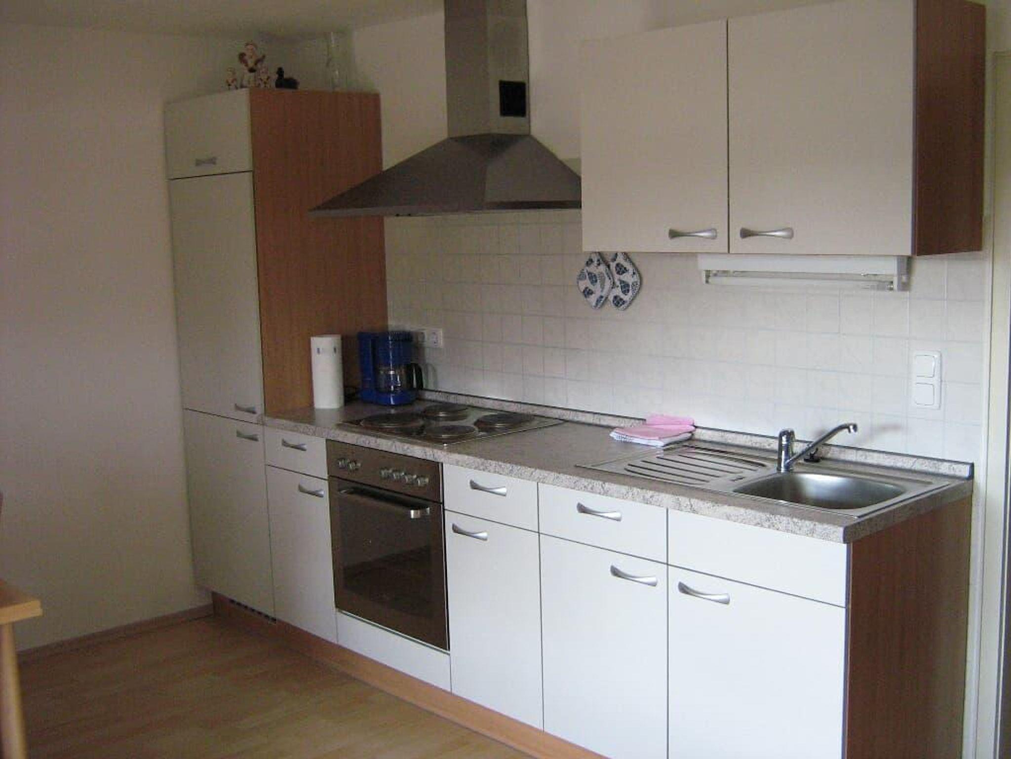 Ein Schlafzimmer mit Doppelbett, ein Schlafzimmer mit Etagenbett und Einzelbett, gemütliche Wohnküche mit komplett eingerichteter Küchenzeile incl. Spülmaschine, Essbereich, Couch und SAT-TV, Bad mit Dusche/WC und Fön.