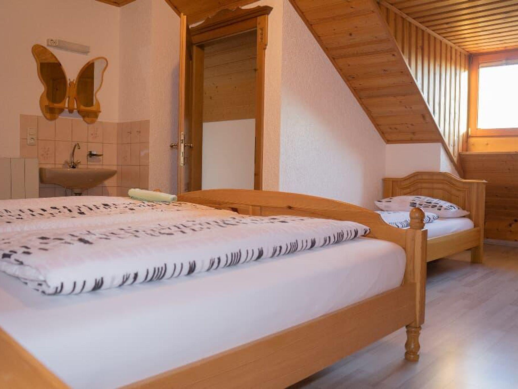 Zwei Schlafzimmer jeweils mit Doppelbett und Einzelbett,