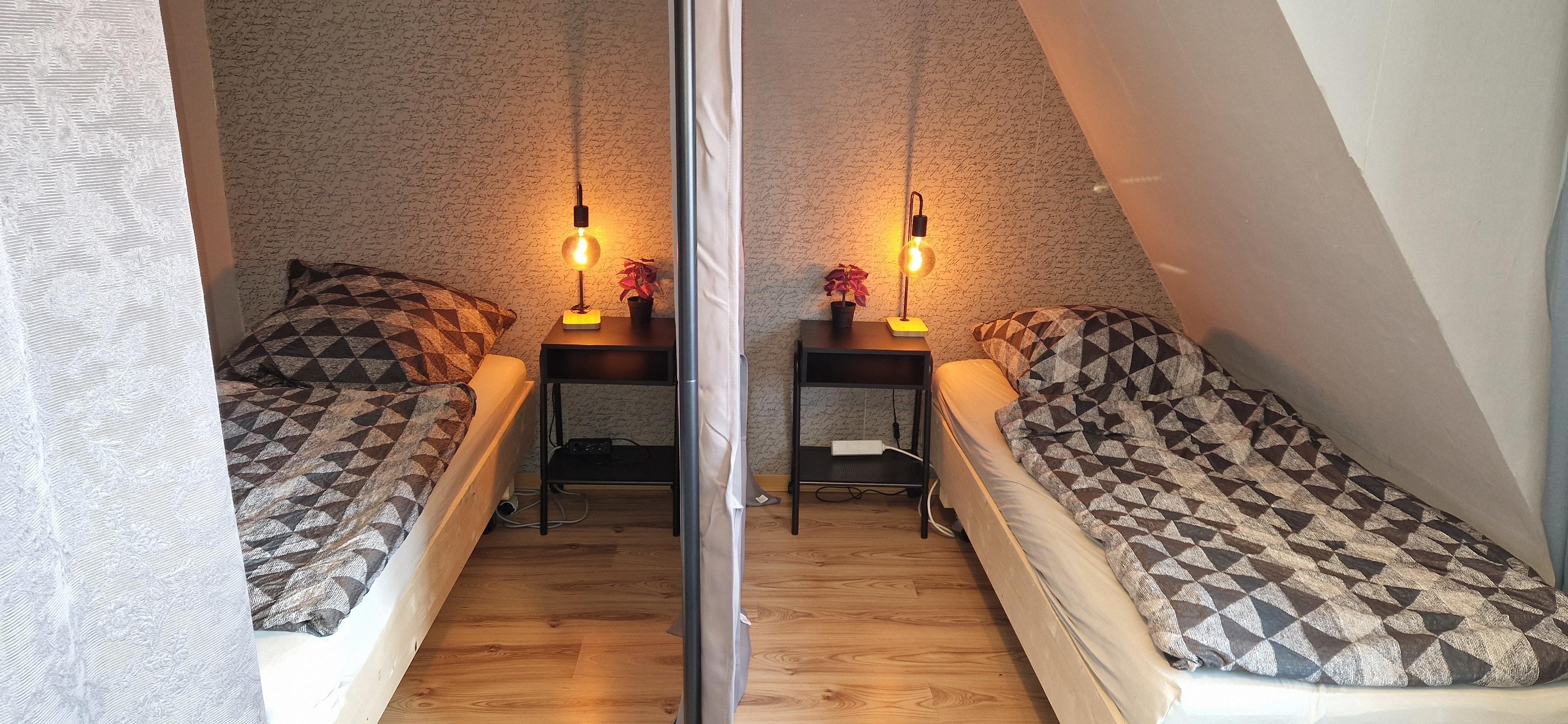 Das kleine Schlafzimmer mit zwei Einzelbetten 0,9m*2m ist ein Durchgangszimmer zum zweiten Schlafzimmer.