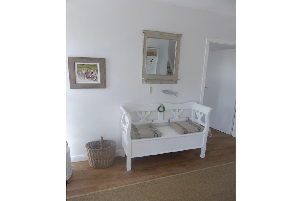 Stueetage: (Køkken(, kogeplade, ovn, opvaskemaskine , køleskab, fryser, insektnet), stue / spisestue(, , bibliotek, Fjernsyn, spisebord, kakkelovn, insektnet), soveværelse(, enkeltseng, enkeltseng, insektnet), badeværelse(, toilet, bruser, håndvask, varme)) På 1. etage: (Stue(, , bibliotek, Fjernsyn, insektnet), soveværelse(, dobbeltseng, insektnet), badeværelse(, toilet, badekar, bruser, håndvask, vaskemaskine, varme, føntørrer)) , , , soveværelse(, enkeltseng, enkeltseng, insektnet), Internetadgang, tørretumbler, vaskemaskine, balkon, varme, terrasse(, Grill center, Strand, grill, grill, havemøbler, solstole), have(Grill center, Græsplæne, havemøbler, solstole, Haveskur), parkering, cykler til rådighed, strygebræt, strygejern, tørreskab, Vaskeripakke mod et gebyr