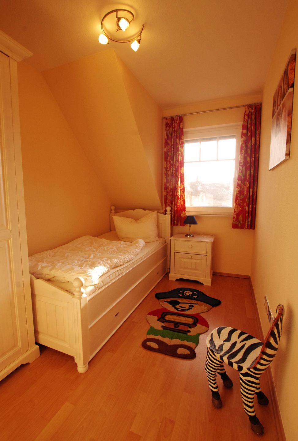 Im ersten Schlafzimmer erwartet Sie ein komfortables Doppelbett, das für erholsame Nächte sorgt. Hier finden Sie auch einen geräumigen Kleiderschrank, um Ihre Urlaubsgarderobe ordentlich zu verstauen. Im zweiten Schlafzimmer wartet ein Etagenbett, das ideal für Kinder oder Freunde ist, die die Ferien gemeinsam verbringen möchten. Das dritte Schlafzimmer bietet ein Bett mit einer ausziehbaren Liegefläche und einen weiteren Kleiderschrank. Für zusätzliche Privatsphäre gibt es im Dachzimmer eine Schlafcouch, die als fünftes Schlafzimmer genutzt werden kann.