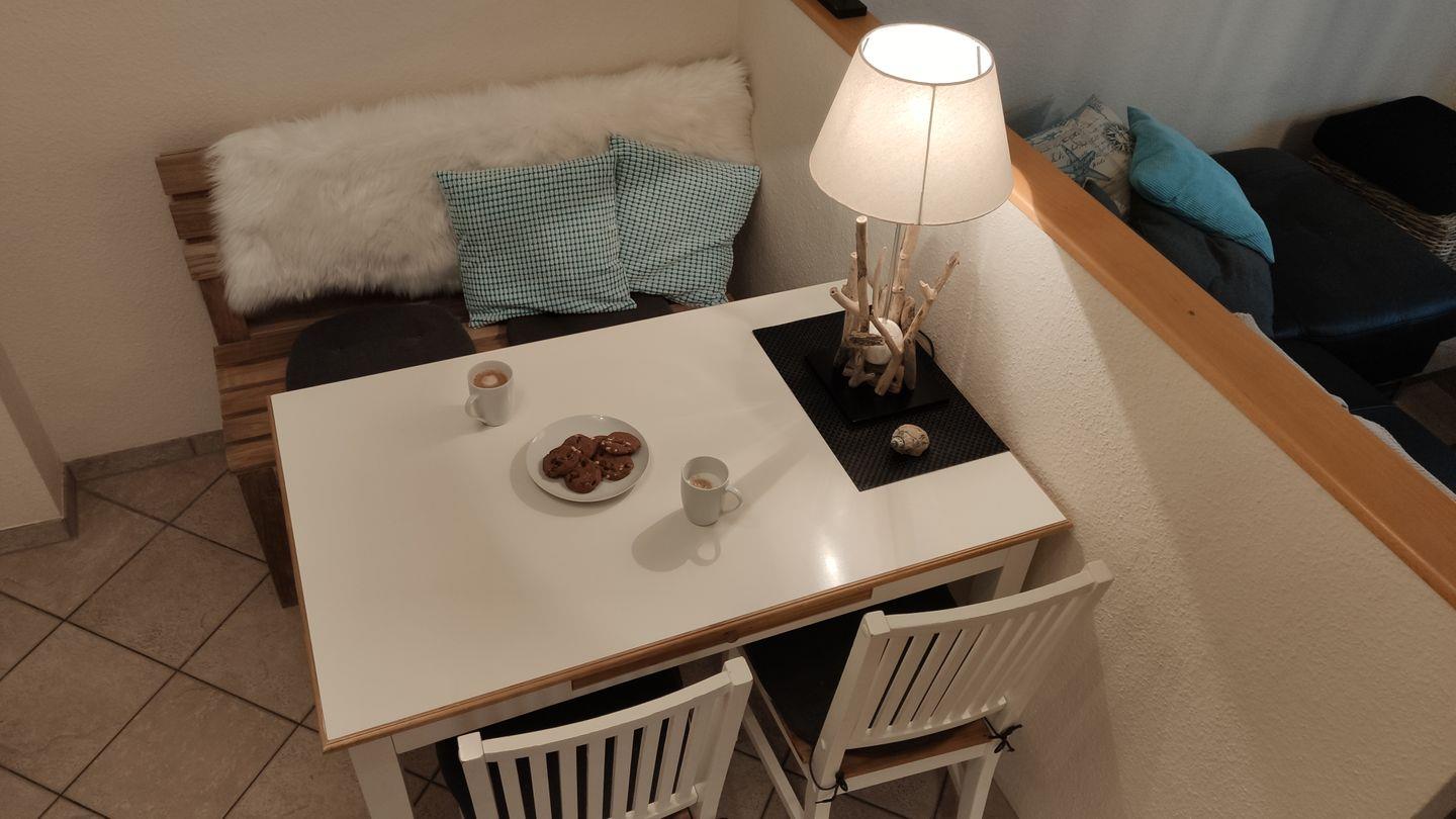 Diese 2- Zimmer-Ferienwohnung in Timmendorf auf Poel liegt im Erdgeschoss des Mehrparteienhauses "Lotsenhaus" und bietet bis zu 2 Personen in modernem Ambiente auf ca. 48 qm sehr gute Voraussetzungen für einen entspannten Urlaub. Der im maritimen Flair eingerichtete Wohn- und Essbereich ist kombiniert und verfügt zudem über eine integrierte, hochwertig ausgestattete Küche, die zum Beispiel mit einem Kühlschrank mit Gefrierschrank, einem Herd mit Backofen, einer Geschirrspülmaschine und Kaffeemaschine ausgestattet ist.