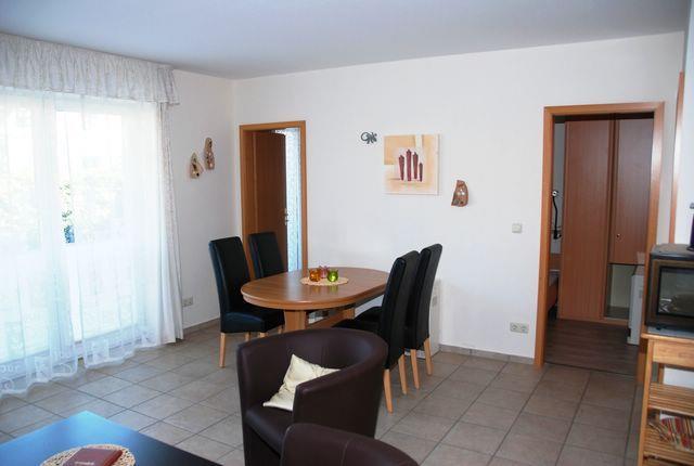 Der Wohn- und Essbereich ist kombiniert und bietet Ihnen eine Sofaecke mit TV-Gerät, einen großzügigen Esstisch und den Zugang zur möblierten Terrasse, von der Sie einen schönen Blick in die umliegende Natur haben.