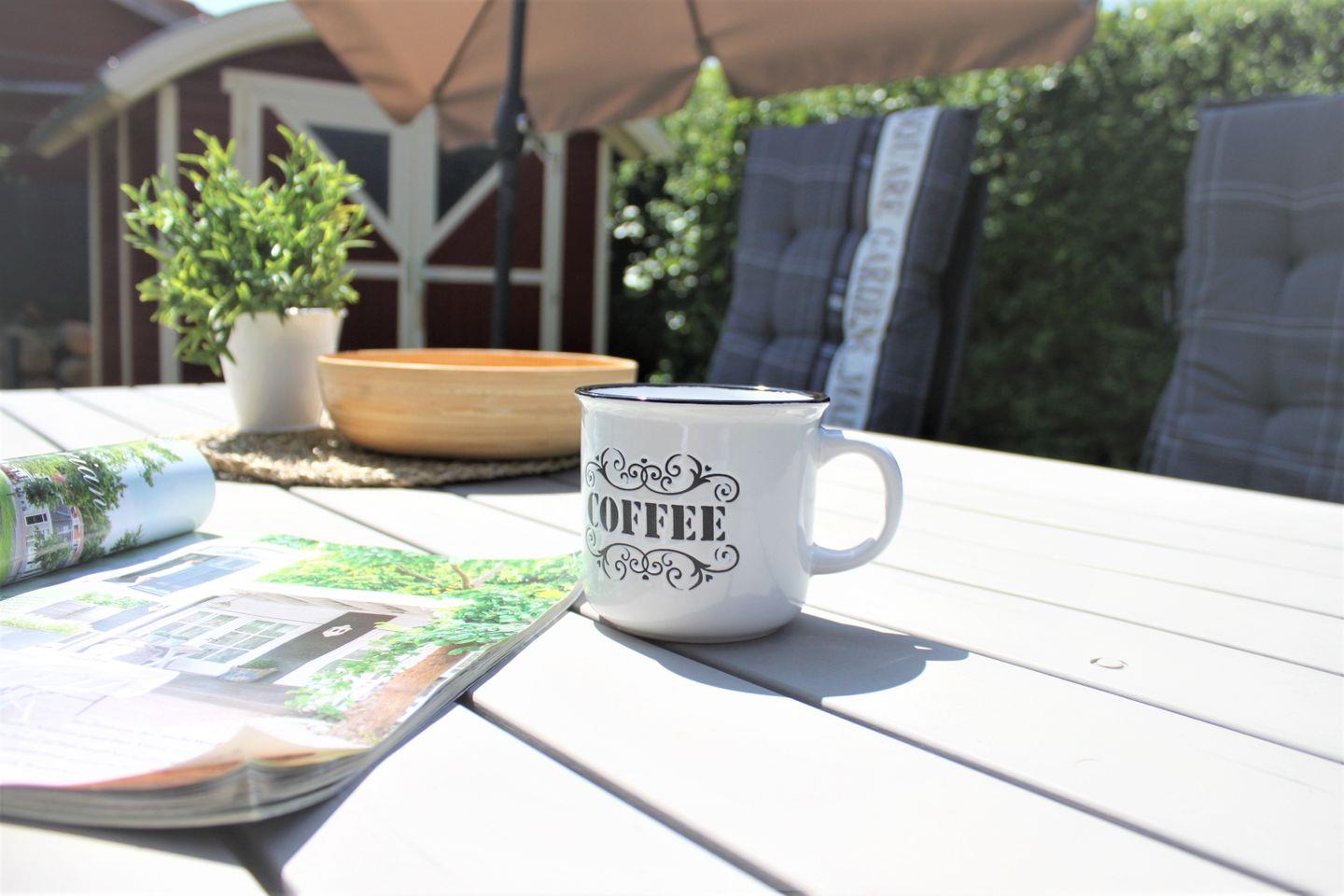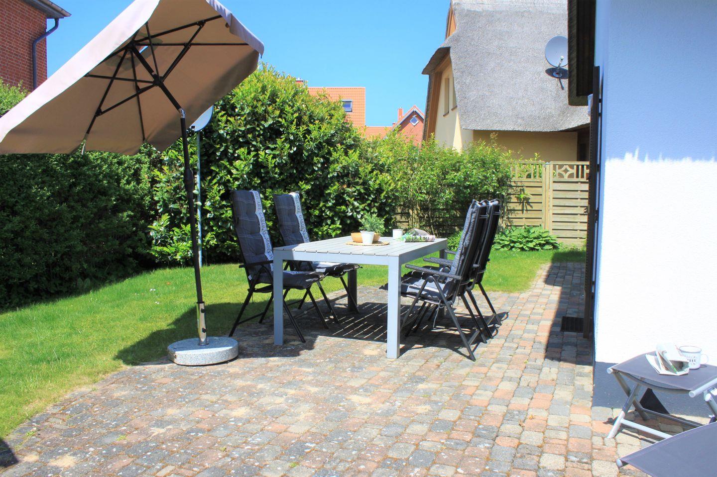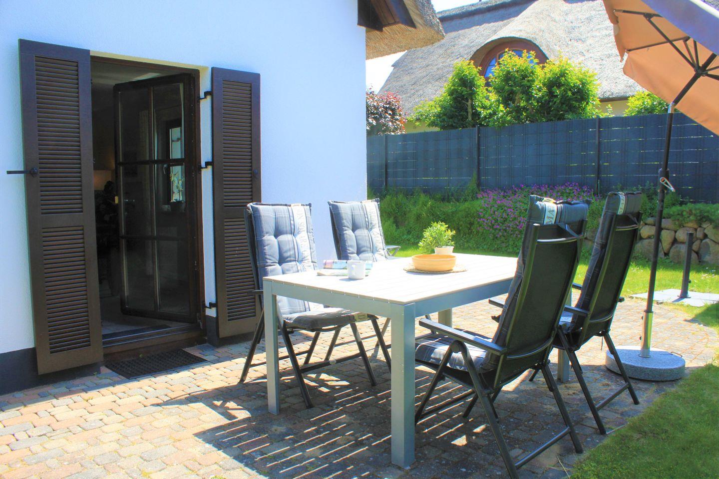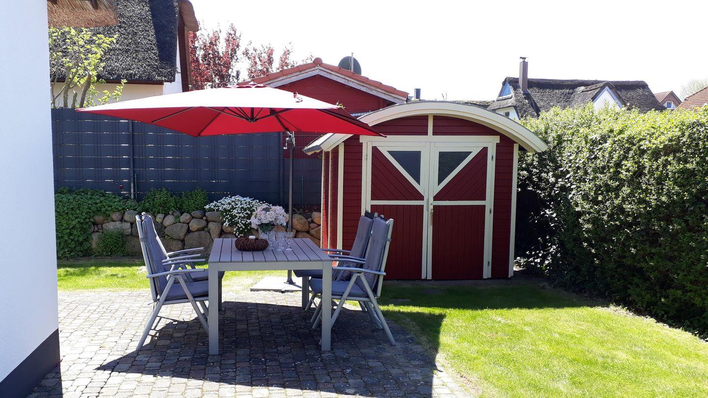Ach ja, im Gartenhaus stehen natürlich ein Grill, Gartenmöbel für 4 Personen, 2 Liegen und 2 Sonnenschirme für Sie bereit (Grillkohle + Anzünder nicht vergessen!).