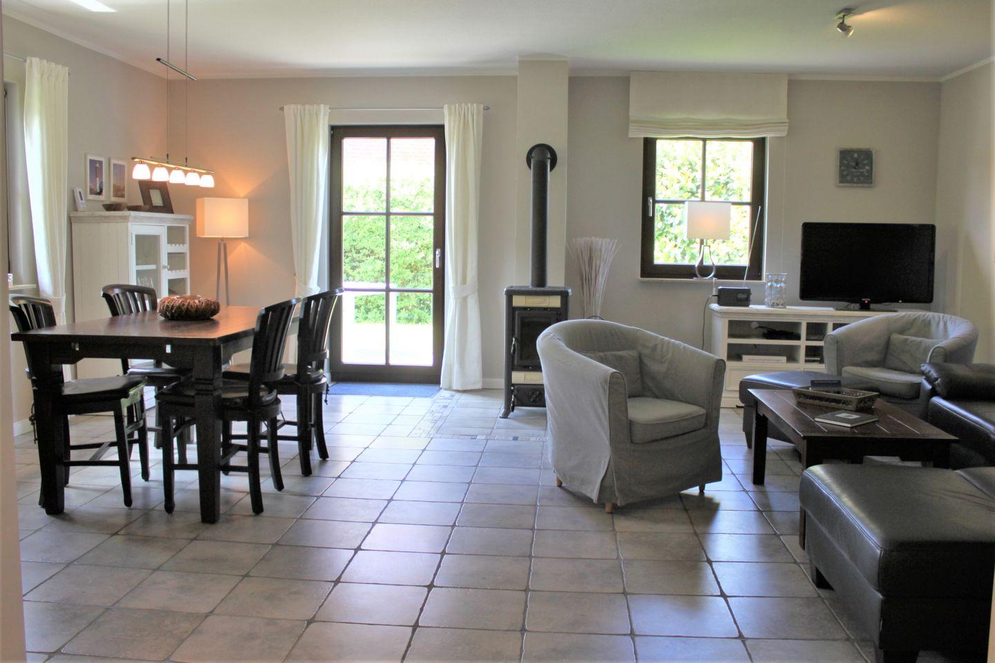 Ich bin ein gemütliches und großzügiges, eingeschossiges Reetdachhaus mit 104qm Wohnfläche. Im Erdgeschoss finden Sie den großzügigen Wohnraum mit Kaminofen und Fußbodenheizung, Essbereich, Küche sowie Gäste WC.