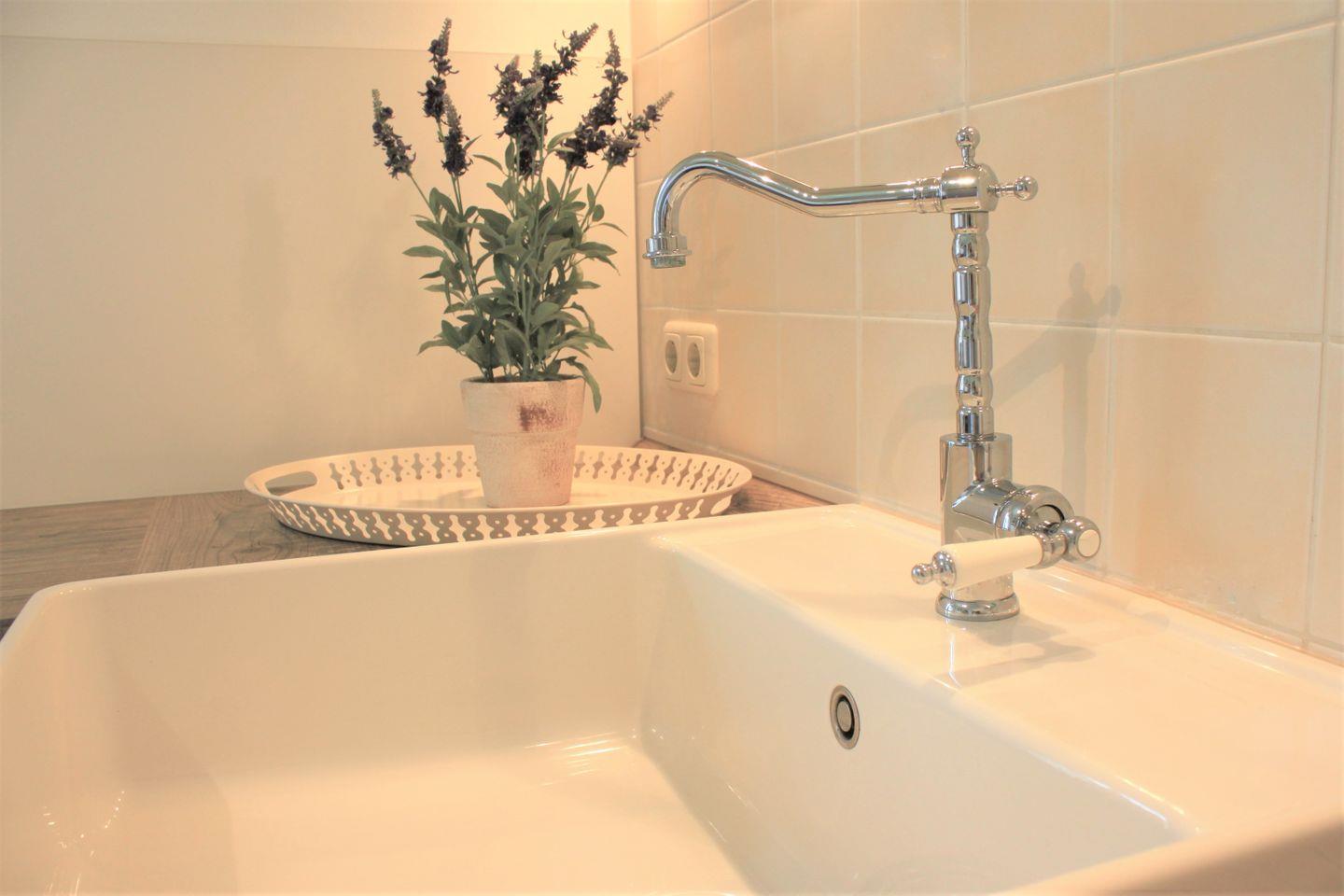Ich bin hell-modern im freundlichen Landhaus Stil eingerichtet. Die hochwertig und voll ausgestattete Küche ist durch eine Schiebetür vom Wohnzimmer getrennt. Neben der Kühl-Gefrierkombi, dem E-Herd mit Ceranfeld, habe ich natürlich auch Kaffee- und Kaffeepad Maschine, Toaster, Mikrowelle, Mixer, Wasser- und Eierkocher ect. an Bord. Ebenso gibt’s einen Eis-Crusher für einen netten Cocktail-Abend.