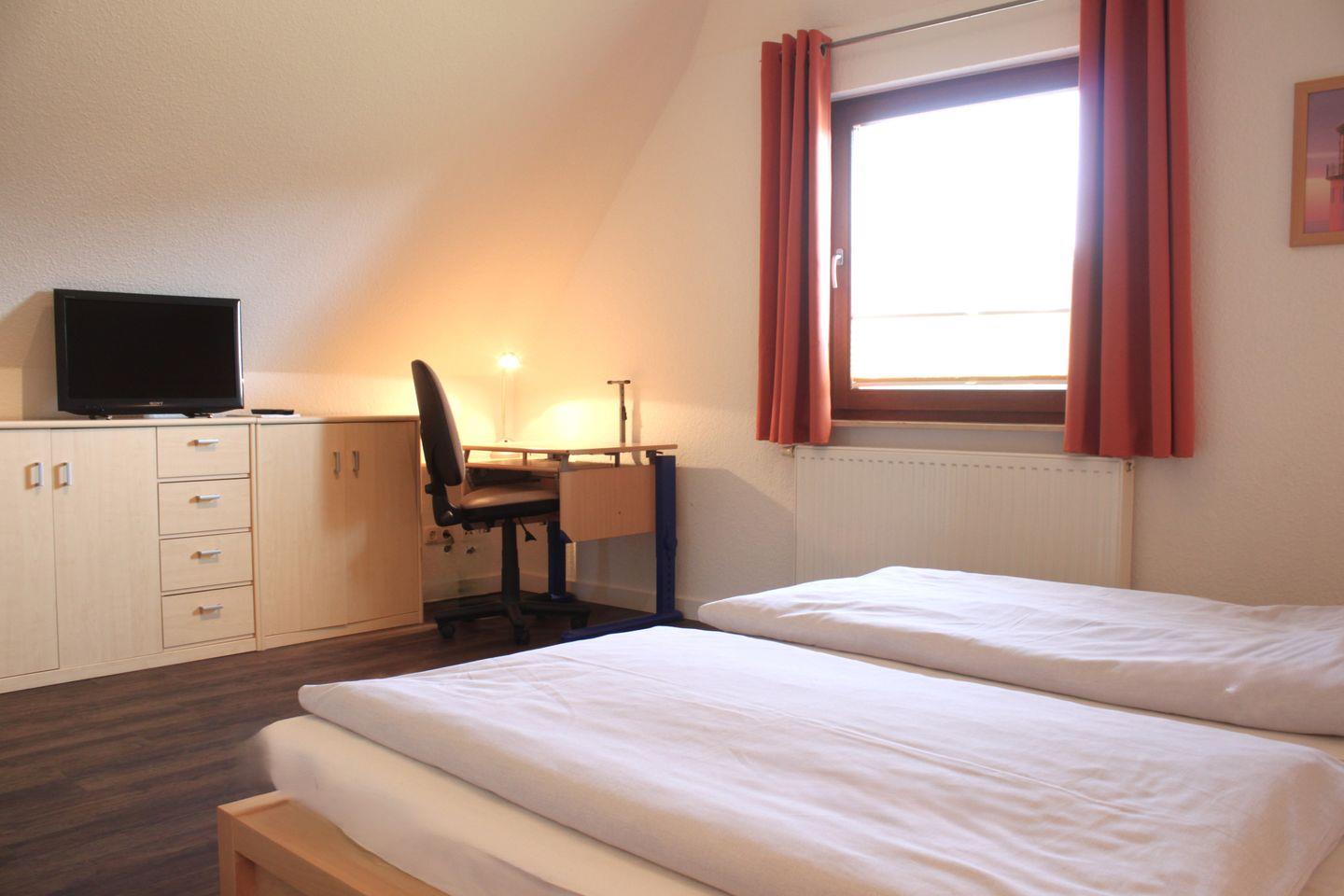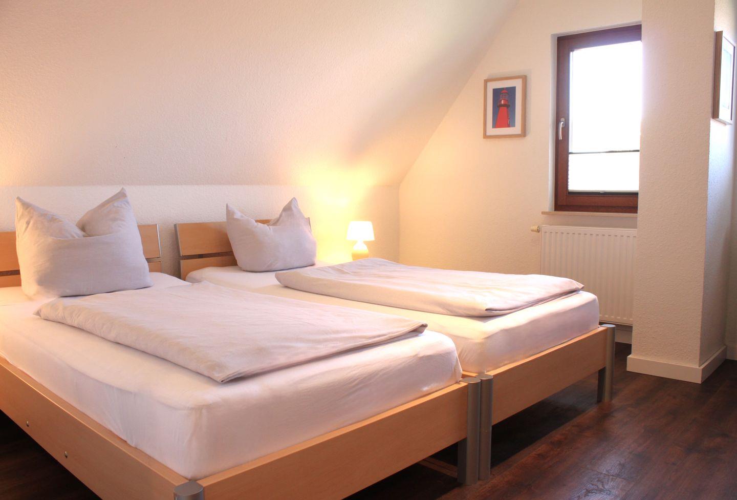 Das zweite Schlafzimmer, ebenfalls mit großem Doppelbett, hat einen herrlichen Blick auf den Leuchtturm. In jedem Zimmer befindet sich ein Sat-TV.