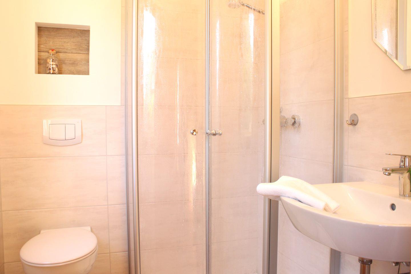 Im Erdgeschoss befinden sich ein Hauswirtschaftsraum mit Waschmaschine und Trockner sowie ein Gäste-WC mit Dusche.