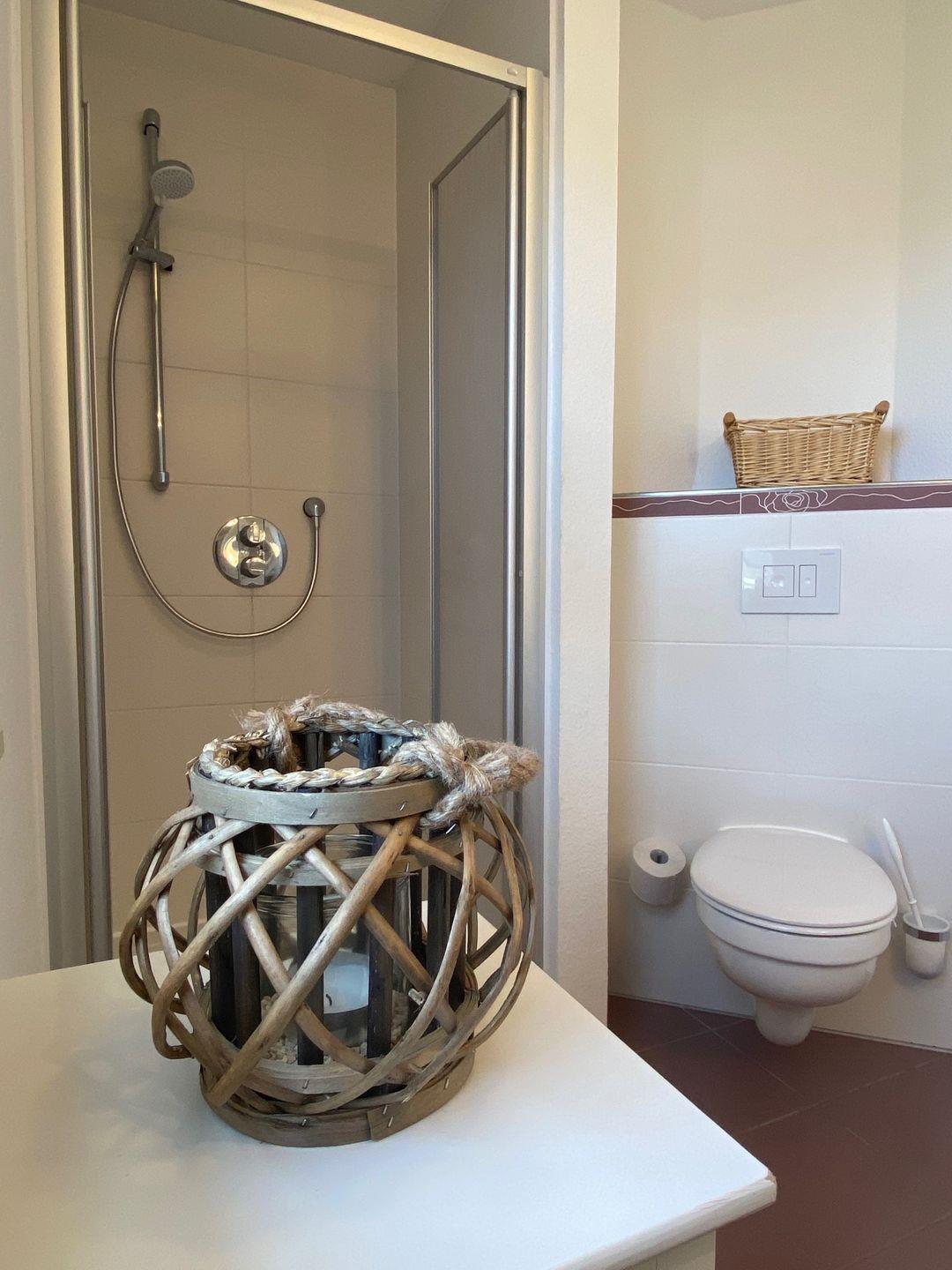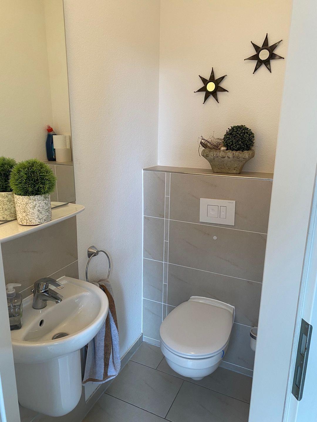 Ein weiteres Gäste-WC im Erdgeschoss, ein kostenloser Pkw-Stellplatz, Waschmaschine, Kinderhochstuhl und Kinderreisebett runden das Angebot ab.
