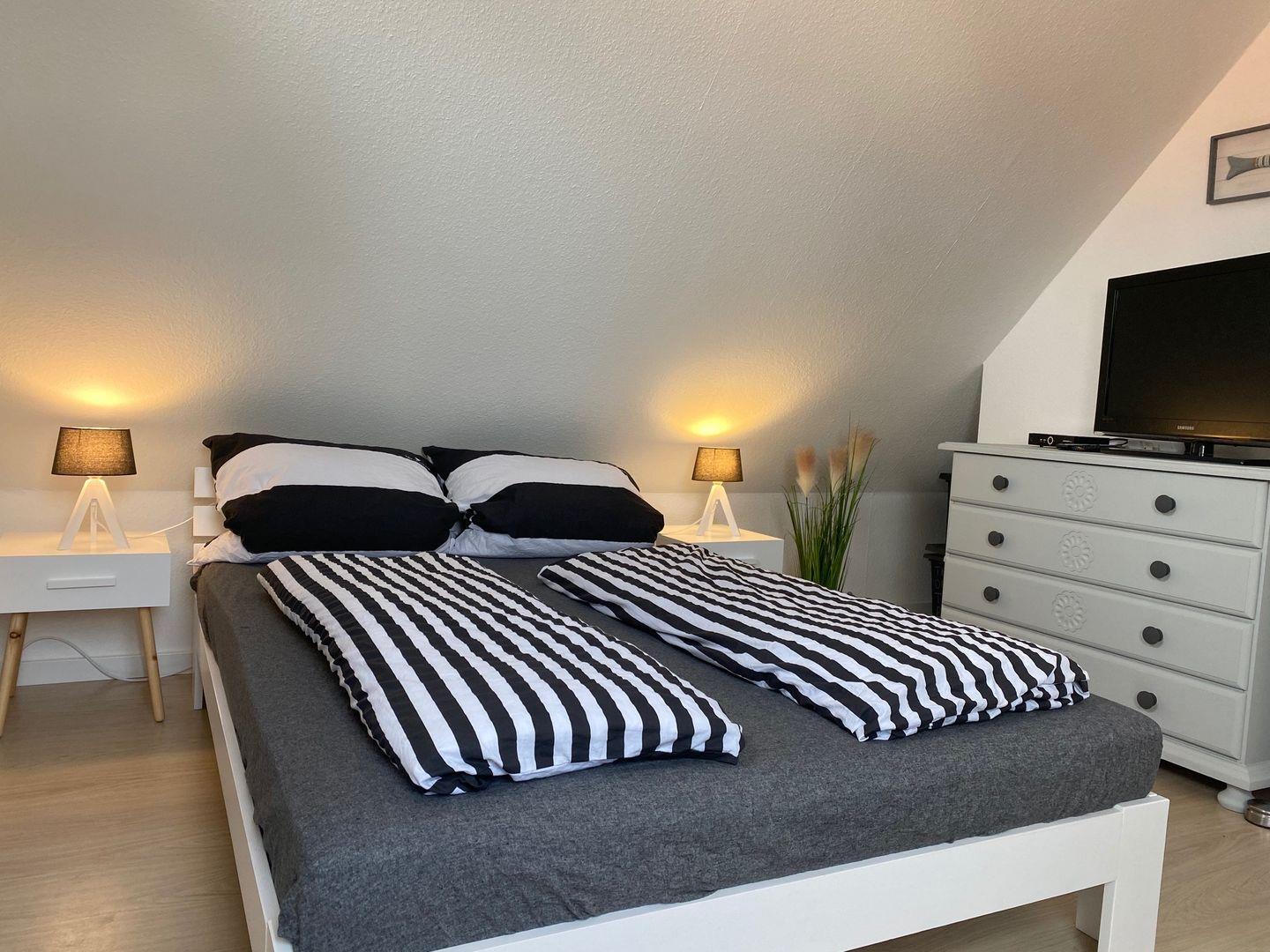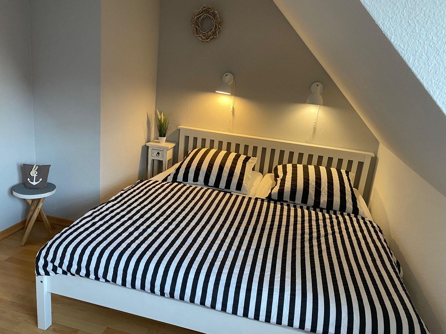 Die oberen beiden Etagen des Hauses bieten Ihnen vier separate Schlafzimmer mit Doppelbetten (1x mit durchgehender Matratze) und genügend Stauraum für Ihre Garderobe. Das Badezimmer ist mit einer Dusche, Waschtisch, Handtuchheizkörper und WC ausgestattet.