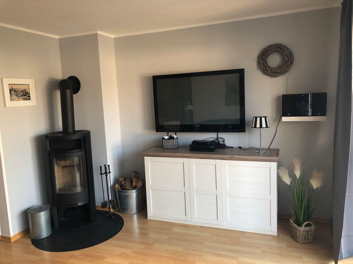 Im hellen, modern eingerichteten Wohn- und Esszimmer verfügen Sie über eine komfortable Sofalandschaft mit TV-Gerät, WLAN und Kamin und großzügigem Esstisch. Die Küche befindet sich ebenfalls hier und bietet Ihnen eine große Auswahl an technischen Geräten, um sich optimal selbst zu versorgen. Dazu gehören unter anderem ein Kühlschrank mit Gefrierfach, ein Herd mit Backofen, eine Geschirrspülmaschine, Kaffeemaschine, Wasserkocher, Toaster und vieles mehr.
