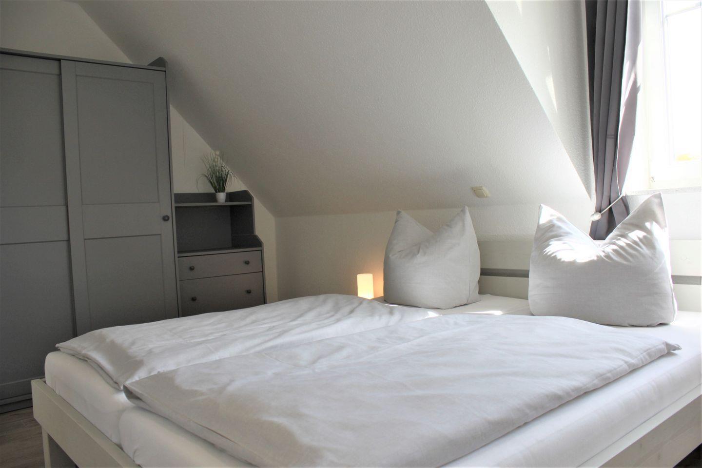 Über eine weitere Treppe erreichen Sie das zweite Obergeschoss mit dem vierten Schlafzimmer, welches über ein Doppelbett und Stauraum verfügt.