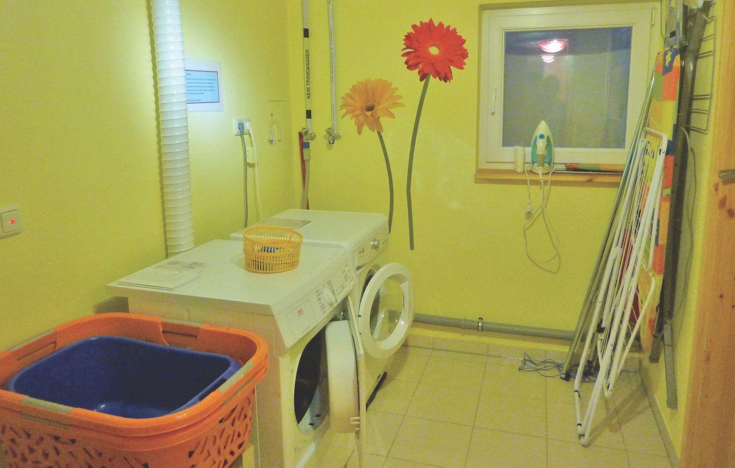 Das Ferienhaus bietet zudem einen gemeinschaftlichen Bereich, der zusammen mit der anderen Haushälfte genutzt werden kann. Hier finden Sie einen Kickertisch, einige Spiele und einen Waschraum mit Trockner und Waschmaschine.
