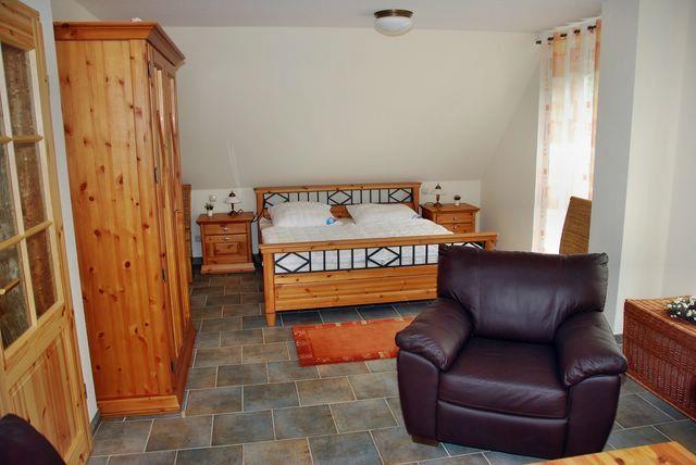 Der kombinierte helle Wohn- und Schlafbereich bietet Ihnen ausreichend Platz für entspannte Stunden. Sie verfügen über eine gemütliche Sofalandschaft, einen TV mit DVD-Player, ein Doppelbett und einen Kleiderschrank für Ihre Garderobe. Außerdem befindet sich hier der Zugang zum Balkon. Nutzen Sie gerne auch unsere kleine Bibliothek oder wählen Sie einen DVD-Film aus unserer Sammlung von über 100 Kinder-, Sach- und Spielfilmen aus.