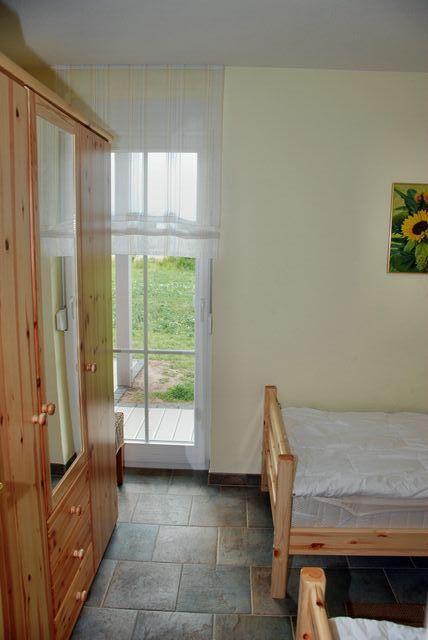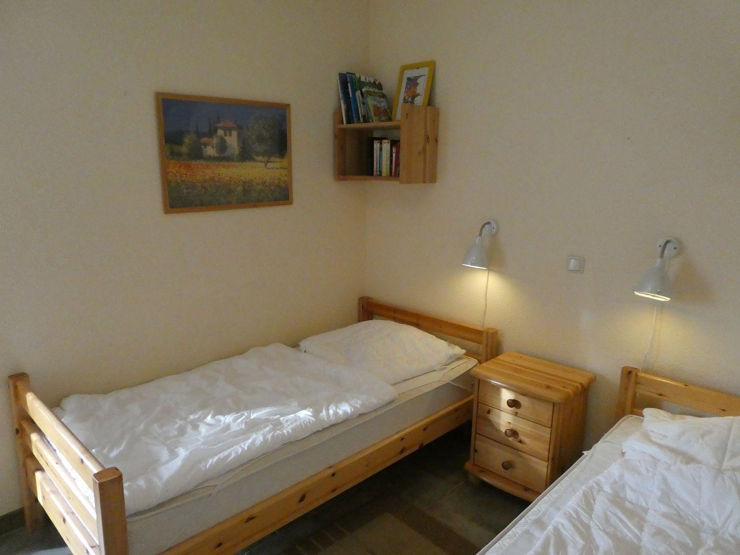 Für einen erholsamen Schlaf bietet Ihnen die Ferienwohnung ein Schlafzimmer mit einem Doppelbett und festem Kinderbett und ein weiteres Schlafzimmer mit zwei Einzelbetten. Zwei weitere Aufbettungen sind über eine Doppelbettcouch im Wohnbereich möglich. Für Ihre Garderobe steht Ihnen jeweils ein Kleiderschrank pro Schlafzimmer zur Verfügung.