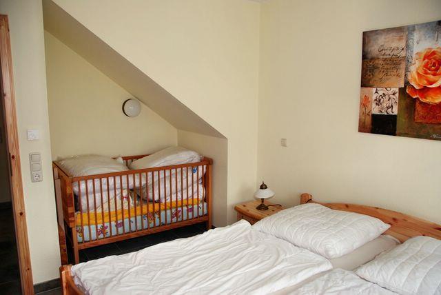 Die gesamte Ferienwohnung verfügt über Rollläden an den Fenstern und ermöglicht gute Verdunklungsmöglichkeiten. Auch an die kleinen Gäste wurde gedacht: ein Kinderbett, ein Kinderhochstuhl und Laufgitter sind vorhanden.