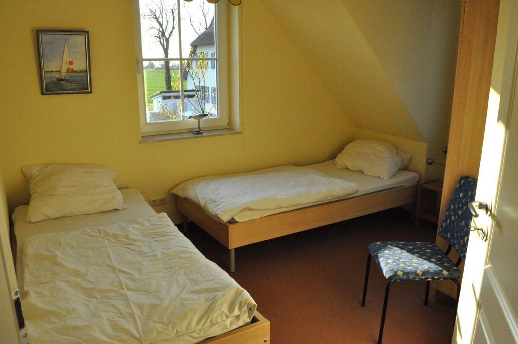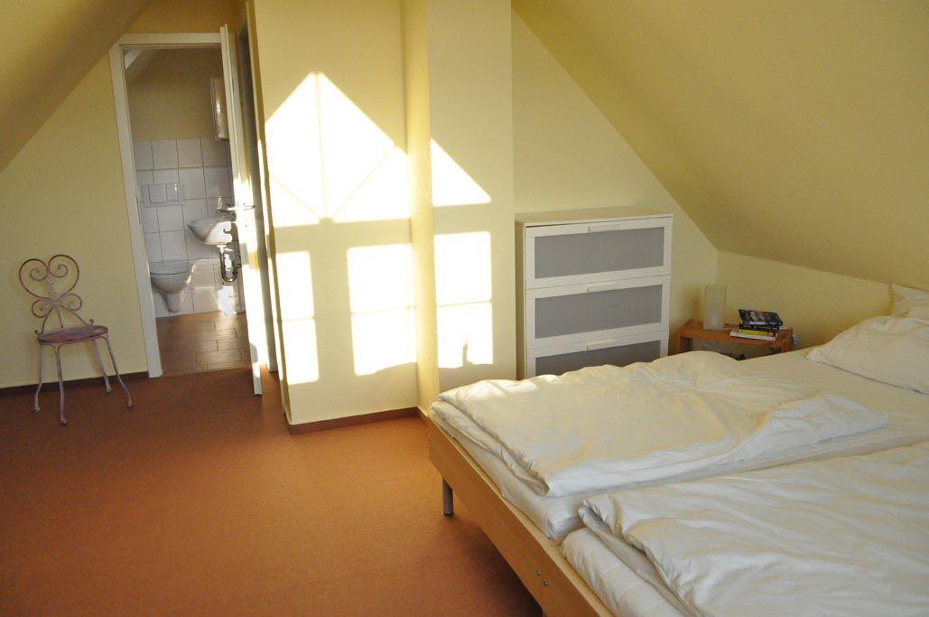 Für erholsame Nächte stehen Ihnen drei Schlafzimmer zur Verfügung, die entweder mit einem Doppelbett oder jeweils zwei Einzelbetten ausgestattet sind. Außerdem finden Sie genügend Stauraum zum Unterbringen Ihrer Garderobe. Zwei Schlafräume befinden sich in der oberen Etage und sind über eine Treppe im Wohnzimmer erreichbar. Ein Schlafzimmer verfügt zudem über ein eigenes an den Schlafraum angrenzendes Badezimmer mit Waschtisch und WC.