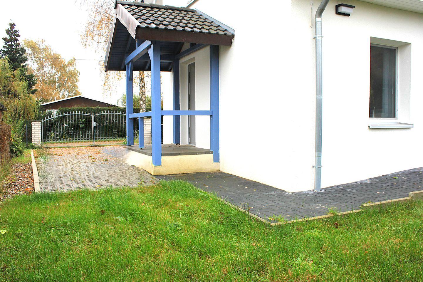 Das Ferienhaus ist sowohl über eine Treppe vor der Haustür als auch über eine befahrbare Rampe über die breite Terassentür zugänglich. Die Terrasse selbst mit einem Tisch mit Stühlen, Sonnenschirm und gemauertem Grill ausgestattet und bietet einen schönen Blick in den umliegenden kleinen Garten. Durch ein zusätzliches Gartentor gelangen Sie auf kürzerem Weg zum Hafen.