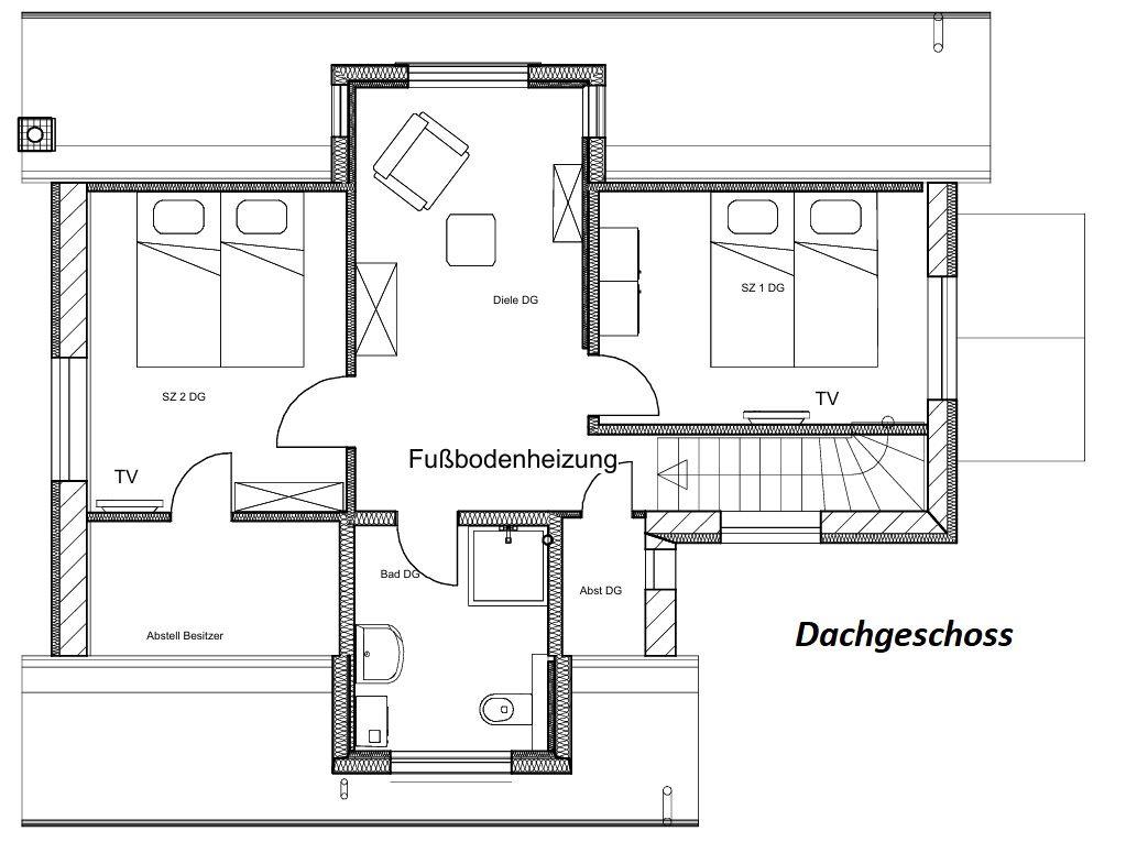 Beide Etagen sind mit einer Wärmepumpen-Fußbodenheizung ausgestattet, die für ein angenehmes Raumklima sorgt. Für die kleinsten Gäste stehen ein Kinderreisebett, ein Hochstuhl und ein Treppengitter zur Verfügung.