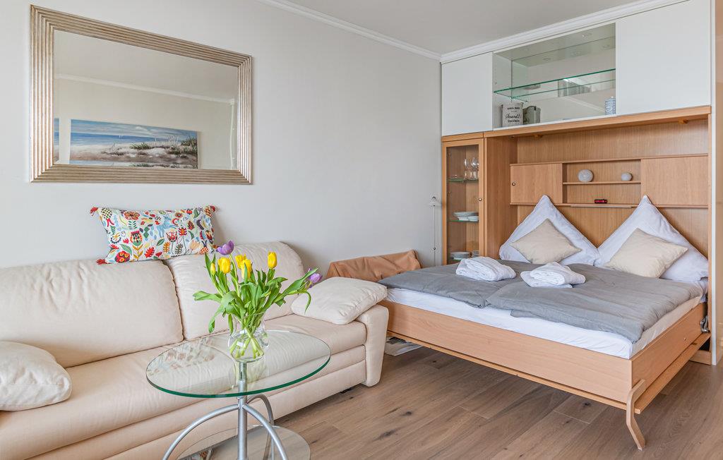 Denne lejlighed på 18. etage i Plaza Premium Hotel i Timmendorfer-Strand inviterer jerig til en afslappende ferie i Østersøen.