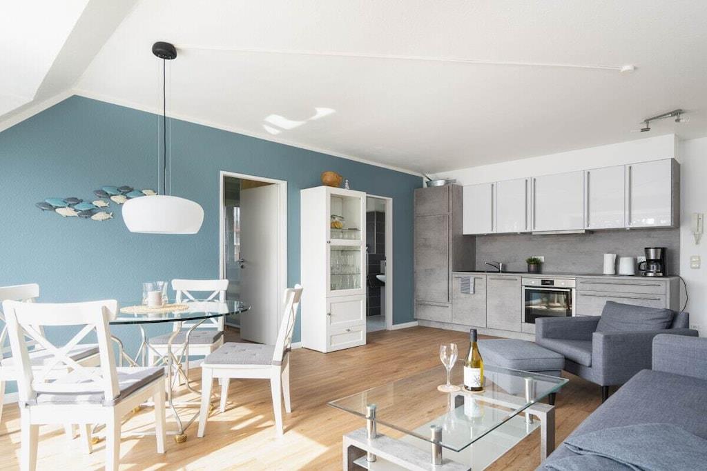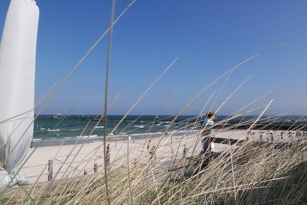 Maj bringer alt nyt...Nyt køkken med opvaskemaskine, nyt laminat, nye og beroligende Østersøfarver. Vores ferielejlighed i udkanten af det smukke feriested Timmendorfer Strand har et friskt look og tilbyder dig ren afslapning. Efter en solrig dag på stranden kan du skylle saltvandet af i det moderne brusebad. Ponygården ved siden af byder på en vidunderlig afveksling for unge og gamle. Der er også masser af fritidsaktiviteter at finde der. Om aftenen er der intet, der står i vejen for et glas vin på altanen.
