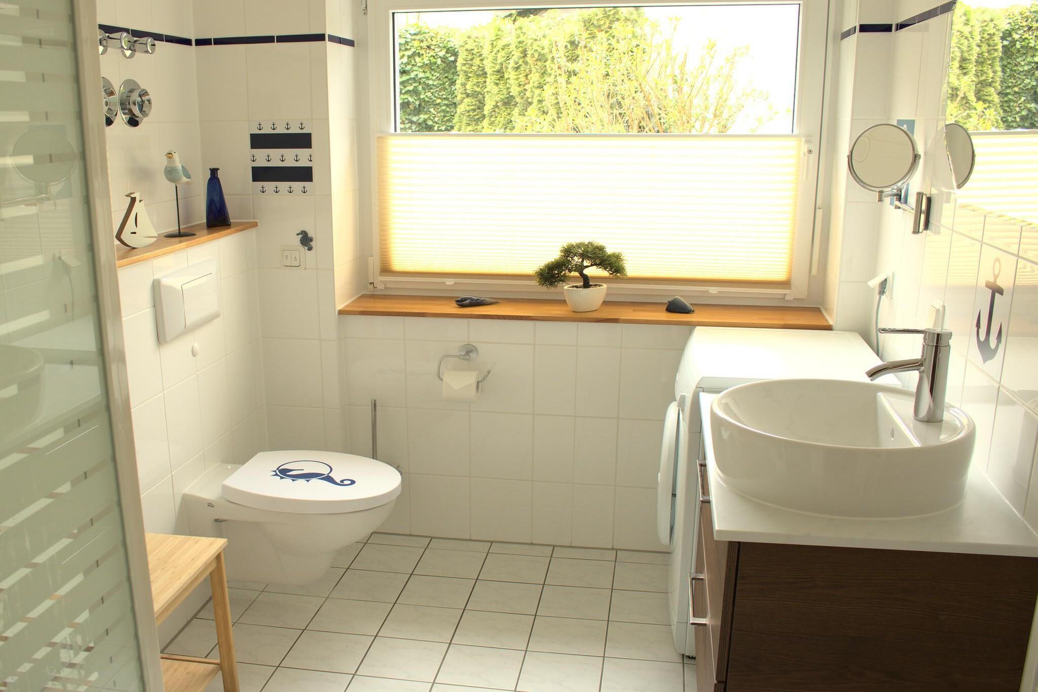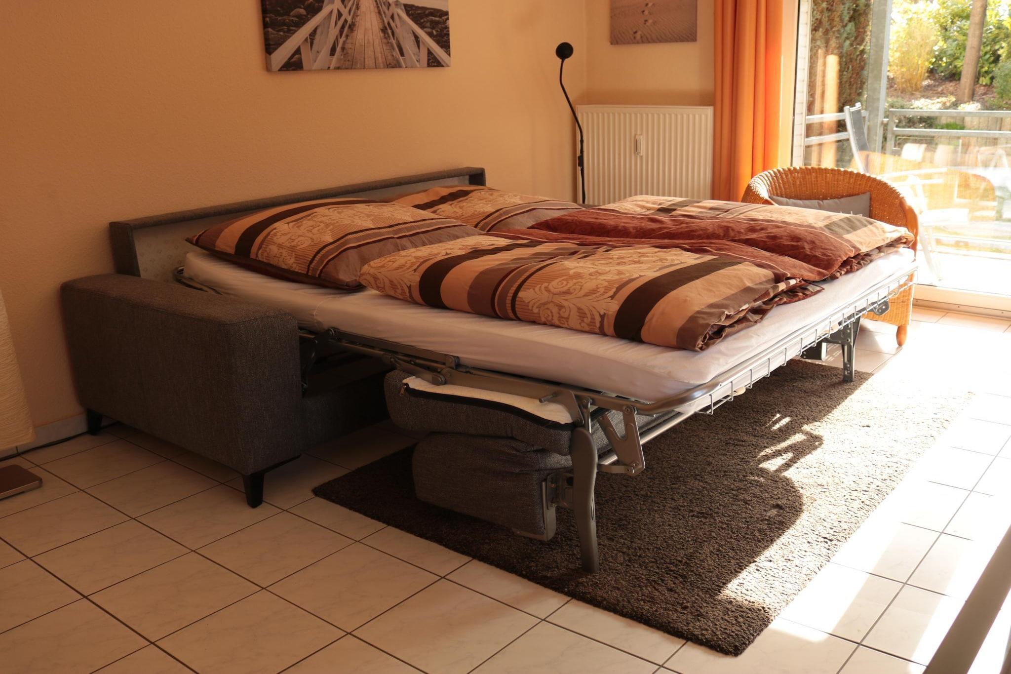 Kun 100 meter fra Østersøen og sandstranden tilbyder denne moderne lejlighed i stueetagen en slank og komfortabel base for par eller små familier. Det åbne køkken er fuldt udstyret med keramisk kogeplade, ovn, opvaskemaskine, køleskab med fryser, blender og to fuldautomatiske kaffemaskiner - perfekt til afslappet morgenmad eller middage i solnedgang. Stuen/spisestuen har et smart-tv, dvd-afspiller, radio og en dobbelt sovesofa (160 × 200 cm), mens soveværelset har en king-size seng (180 × 200 cm) og eget fladskærms-tv. Badeværelset har bruseniche, vaskemaskine, hårtørrer og alt det nødvendige for et afslappet ophold. Udenfor kan du nyde den overdækkede terrasse med havemøbler og parasol samt cykelkælder og parkering på stedet. En børneseng, strygebræt og strygejern tilføjer ekstra bekvemmelighed, mens vaskeri og linnedpakker er tilgængelige mod et gebyr. Med vandsport (500 m), indendørs svømning (100 m), restauranter, bageri, supermarked og cykeludlejning inden for 100 meter, er du perfekt placeret til at udforske Niendorfs pulserende kystcharme.