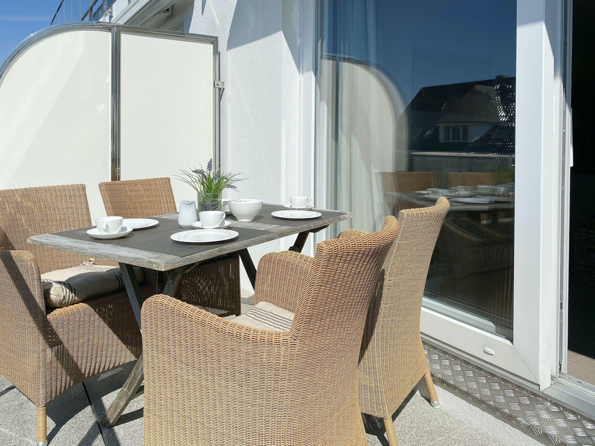 Die Wohnung bietet zeitgemäßen Luxus auf 106 qm Wohnfläche im 2. Obergeschoss des Hauses Timmare I. Mit zwei separaten Schlafzimmern mit Doppelbetten (jeweils 180x200), elektrischen Außenjalousien und TV sowie zwei separaten, hochwertigen Bädern, eines ist mit einer geräumigen Dusche, das andere mit einer großen Badewanne, finden hier 4 Personen reichlich Platz zum Entfalten. Das geschmackvoll gestaltete Wohnzimmer mit Sylter Flair ist mit 2 gemütlichen Sofas, TV, Stereoanlage und kostenlosem Internetzugang über WLAN ausgestattet. Der integrierte Küchenbereich mit einem großen freistehenden Küchenblock zum Essen bilden das Herzstück der Ferienwohnung. Bei der Ausstattung und Einrichtung des Objektes wurde sehr viel Wert auf hochwertige Materialen gelegt. Zwei großzügige Balkone sorgen vom Frühstück bis in die Abendstunden für schöne, sonnige Aussichten.