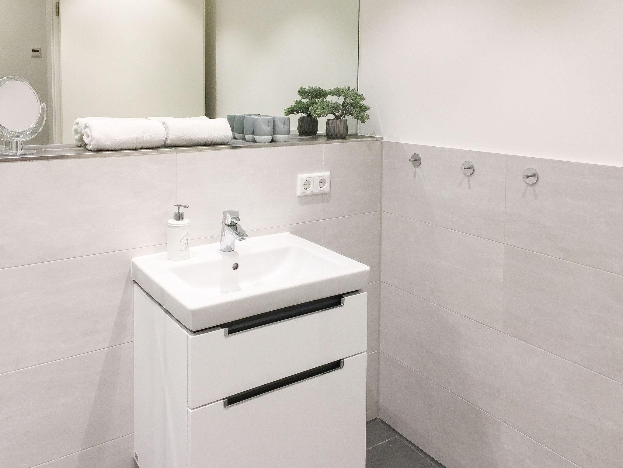 Die ca. 60 qm großzügig geschnittene Wohnung mit 3 Räumen, bietet genügend Platz für 4 Personen und befindet sich im Erdgeschoss einer Neubau-Wohnanlage. Die moderne Einbauküche ist direkt mit dem gemütlichen Wohn-Essbereich verbunden. Schöne Designböden sowie liebevolle, maritime Dekorationselemente sorgen für Behaglichkeit und spiegeln die Nähe zum Meer wieder.[nbsp] Alle bodentiefen Fenster sind mit elektrischen Außenjalousien ausgestattet und sorgen am Tag für lichtdurchflutete Räume. Zwei Schlafzimmer, eingerichtet mit einem Boxspringbett (180x200) und einem Doppelbett (140x200), lassen Sie nach einem ereignisreichen Urlaubstag[nbsp] perfekt zur Ruhe kommen. Das Bad bietet eine ebenso moderne Ausstattung wie die anderen Bereiche der Wohnung. Selbstverständlich gehören die kostenlose WLAN Nutzung, Radio und ein großer Flat Screen-TV zum Entertainment-Paket. Auf der dazugehörigen, möblierten Terrasse mit elektrischer Markise können Sie die Sonnentage an der frischen Luft genießen, entspannen oder einfach Ihre Seele baumeln lassen.