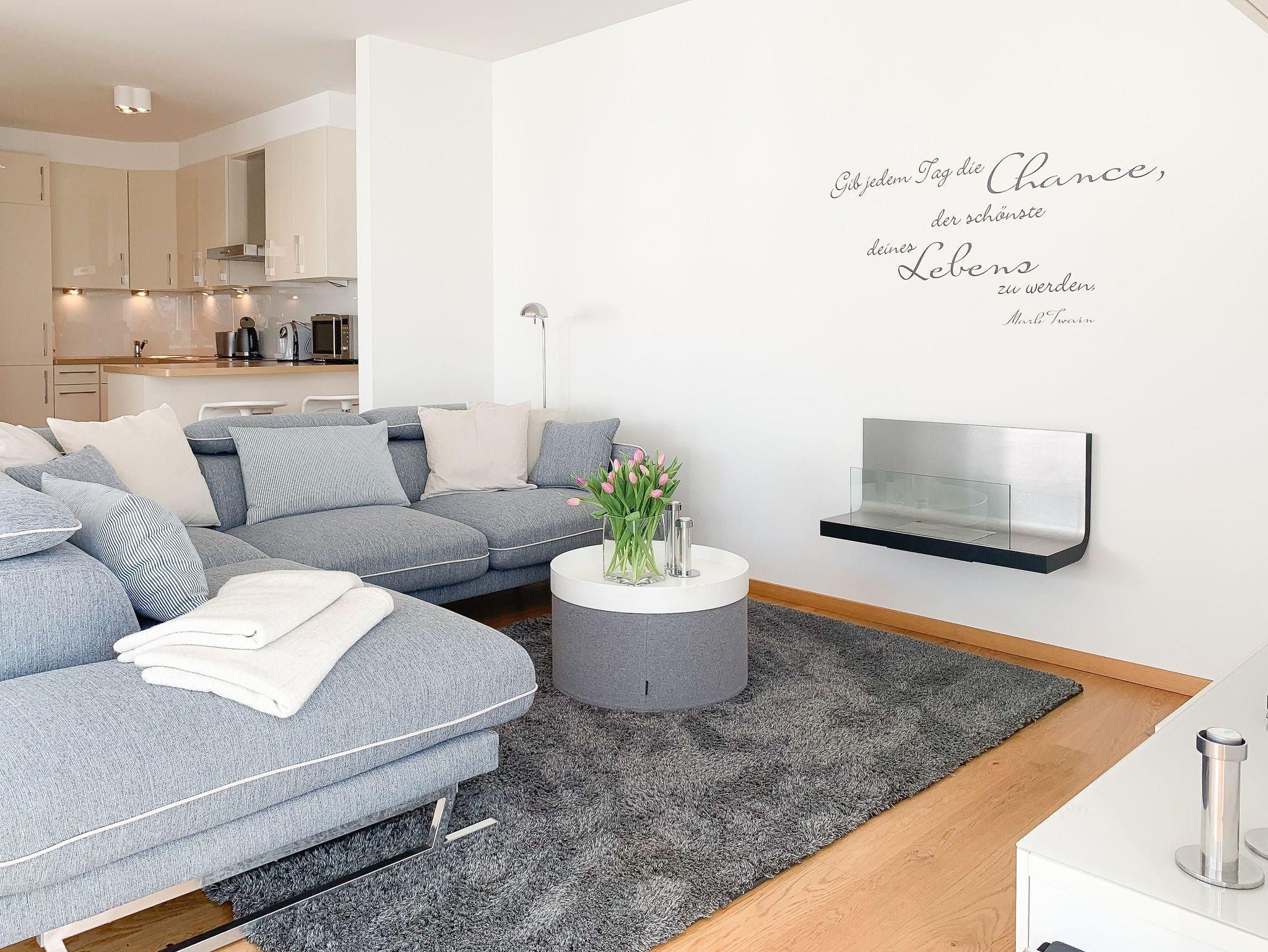 Die geschmackvoll eingerichtete Wohnung[nbsp] im 2. Obergeschoss hat helle, sonnige Wohnräume mit großen Fensterflächen und Echtholzparkett, die eine angenehme Wohnatmosphäre schaffen. Die offene Einbauküche verfügt über Mikrowelle, Backofen, Kochfeld und Spülmaschine. Im anschließenden Wohnbereich mit gemütlichem Sofa und Ethanol-Kamin, befinden sich ein TV, Hifi-Anlage sowie Internetanschluss über WLAN. Vor dem großzügigen Essbereich, der für 6 Personen ausreichend Platz bietet, befindet sich der mit Rattan Möbeln ausgestattete Westbalkon, auf dem vom frühen Nachmittag bis in die Abendstunden die Sonne scheint. Es stehen zwei separate Schlafzimmer zur Verfügung, wovon das eine mit einem Doppelbett (180x200) und das andere mit einem Doppelbett (160x200) und[nbsp] TV ausgestattet ist. Im modernen Bad mit großer Dusche und Handtuchwärmer ist eine Waschmaschine untergebracht. Ein separates Gäste WC steht ebenfalls zur Verfügung. Ein fest reservierter PKW Stellplatz und ein Fahrradkeller befindet sich in der hauseigenen Tiefgarage (Einfahrtshöhe 2 m). Das Haus verfügt über einen Fahrstuhl. Münzwaschmaschine und Trockner sind vorhanden.