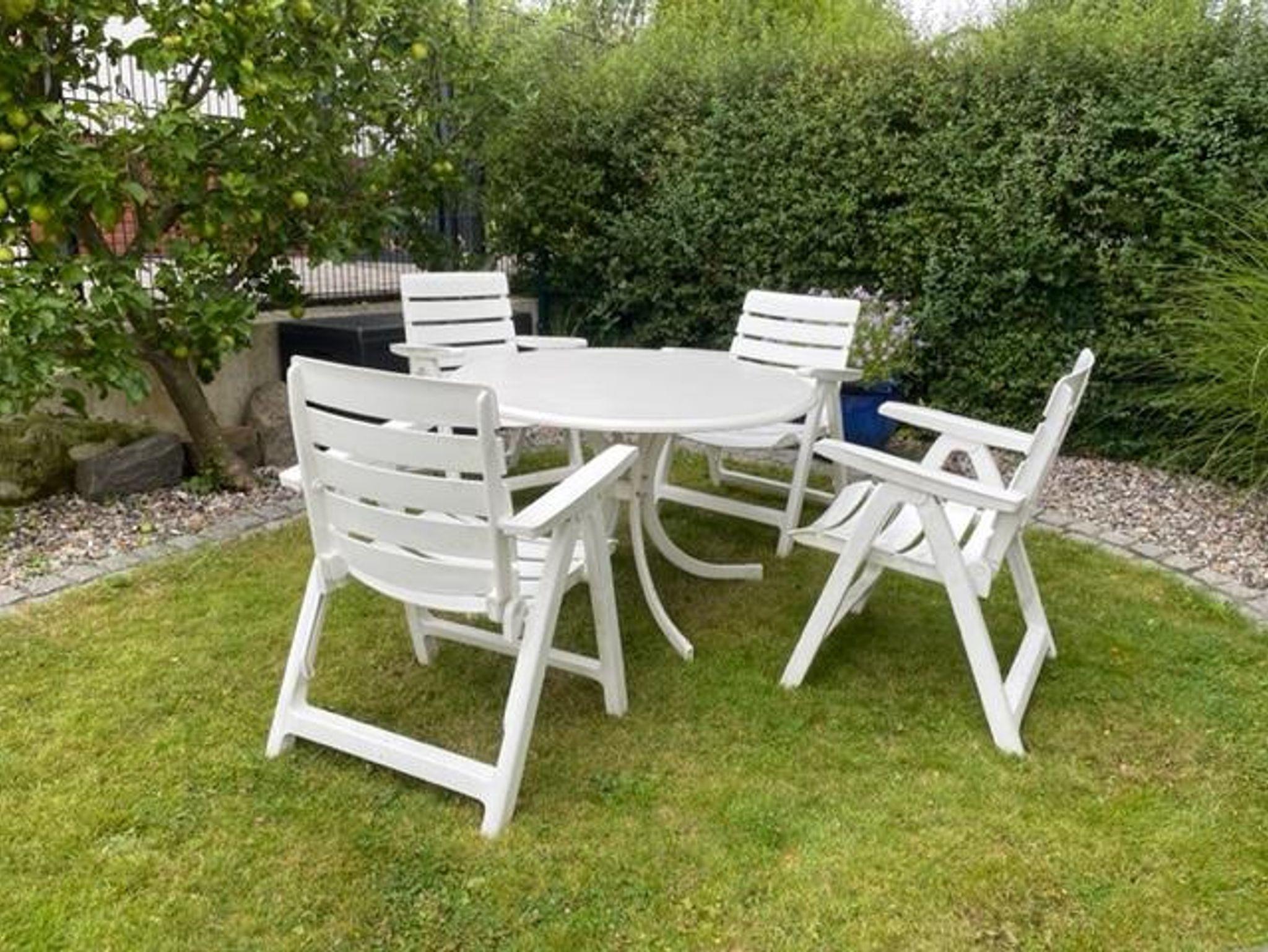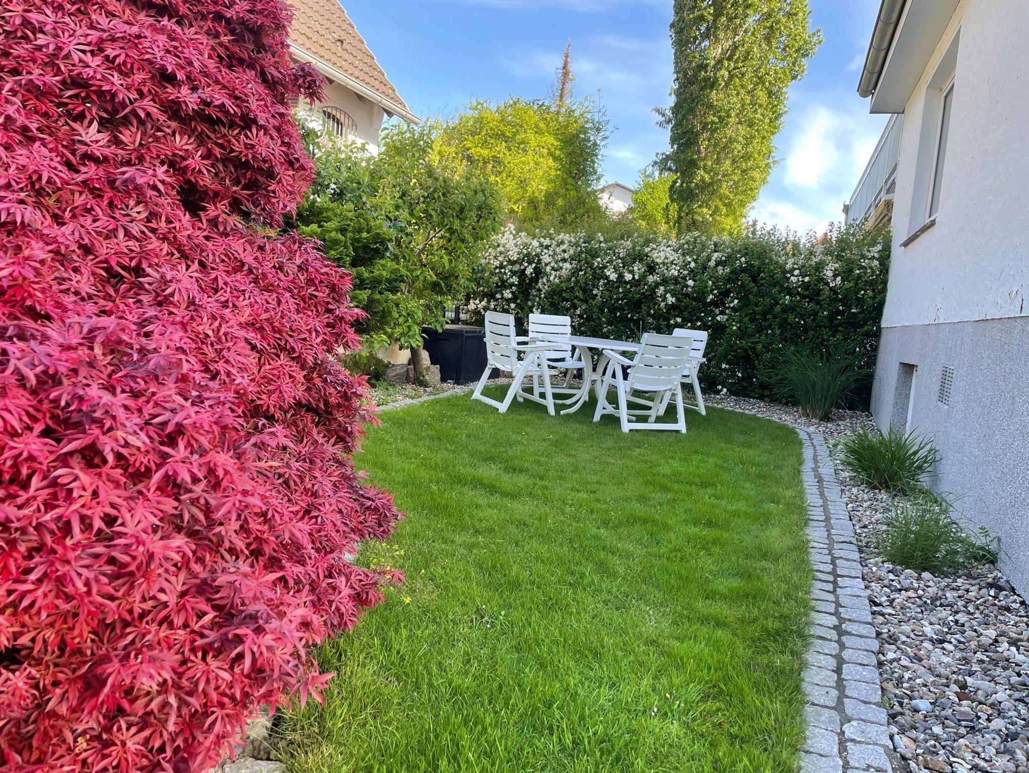 Weitere Ausstattungsmerkmale sind der nach Süden ausgerichtete Balkon mit einer Breite von 6 m sowie eine Sitzgruppe im Garten.