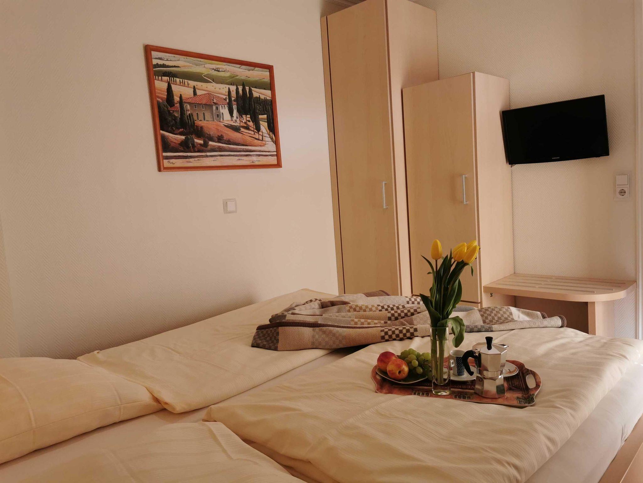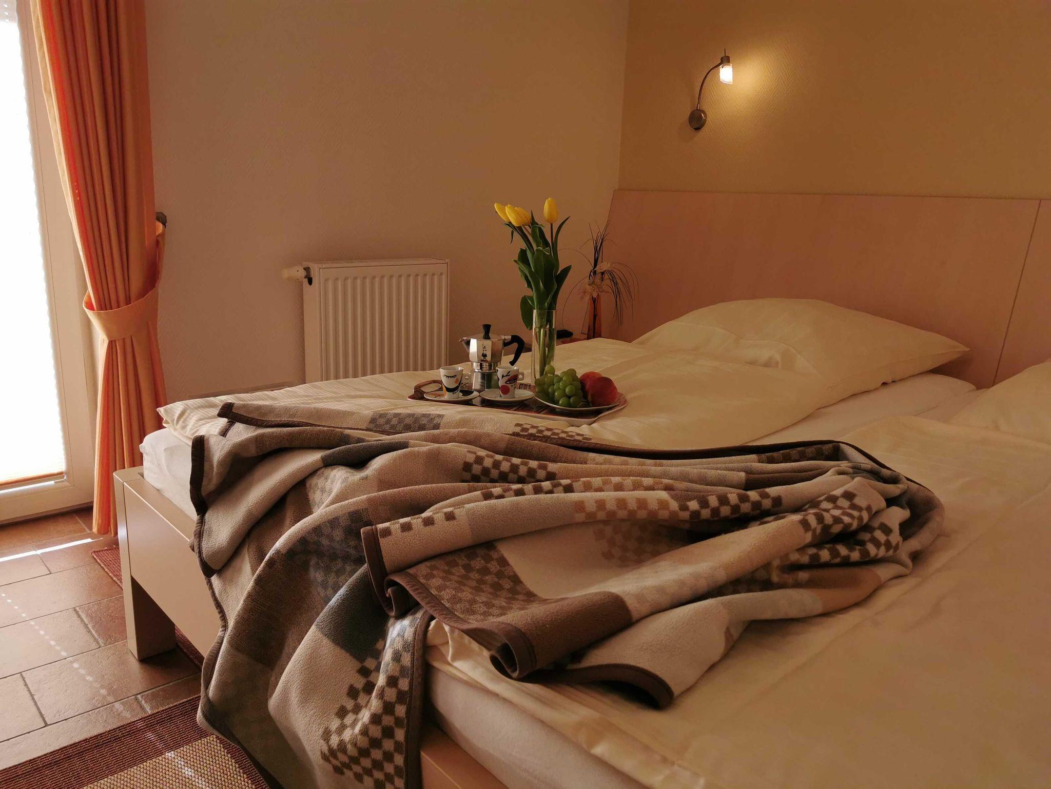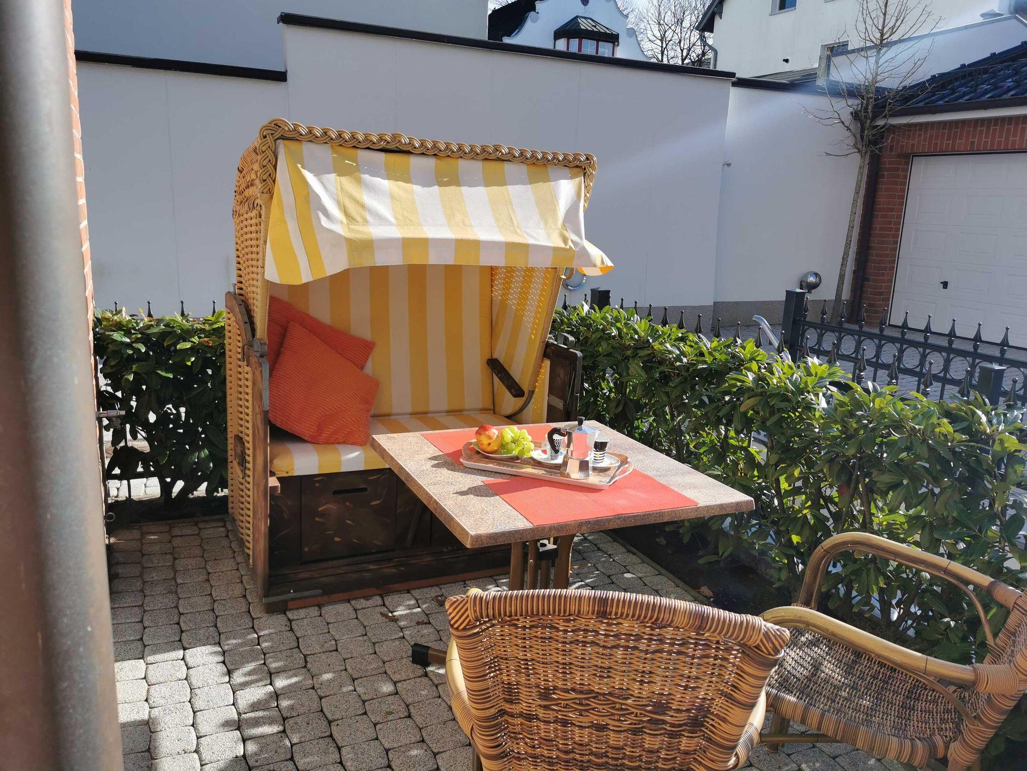Die Wohnung befindet sich im Erdgeschoss am Kurpark, Kurparkstr. 7, optimale Appartment-Aufteilung ca.44m². Sie ist neuwertig, voll möbliert und mit allem Komfort wie zwei Fernseher mit Radio u. Musiksender versehen. Wohn- und Essbereich mit Ausgang auf die abgeschlossene möblierte Süd-West Sonnenterrasse mit Strandkorb u. Markiese, Schlafzimmer, Flur, Duschbad, Einbauküche im Wohnbereich (Geschirrspüler, Backofen, Ceranfeld, Gefrierfach, Mikrowelle usw.) Alle Räume Terrakottafliesen, moderne Einrichtung, TV-Überwachung, Kabel-TV, Wlan, Aufzug, Fahrradabstellplatz. Im Haus befindet sich ein Sauna-Wellnessbereich, sowie Waschmaschine und Trockner. Unsere Preise variieren, je nach Saison, zzgl. Endreinigung, zubuchbar Wäschepaket Parkplatz Hund. Diese Ferienwohnung ist für 2 Personen, modern und mediterran, eingerichtet.