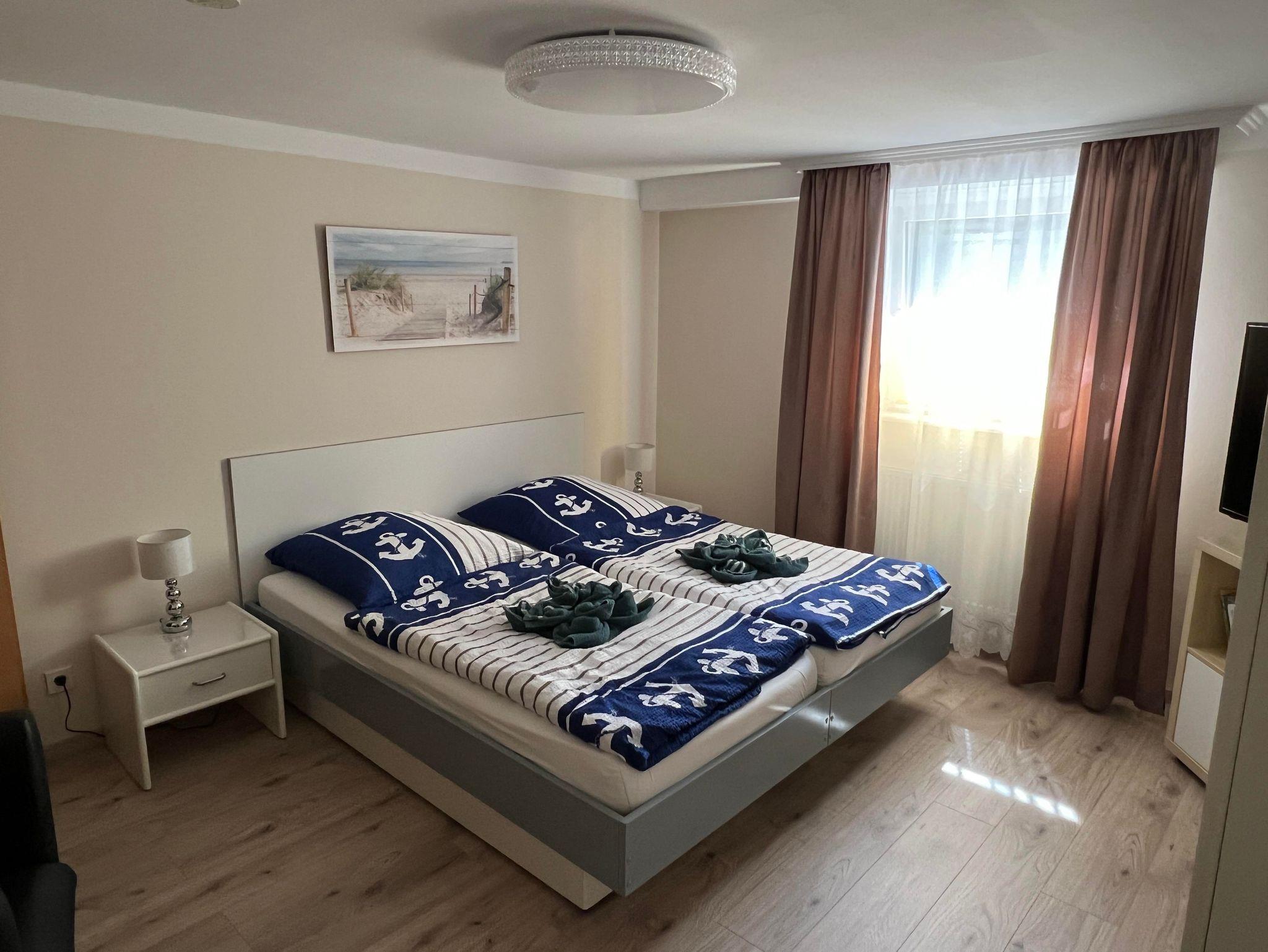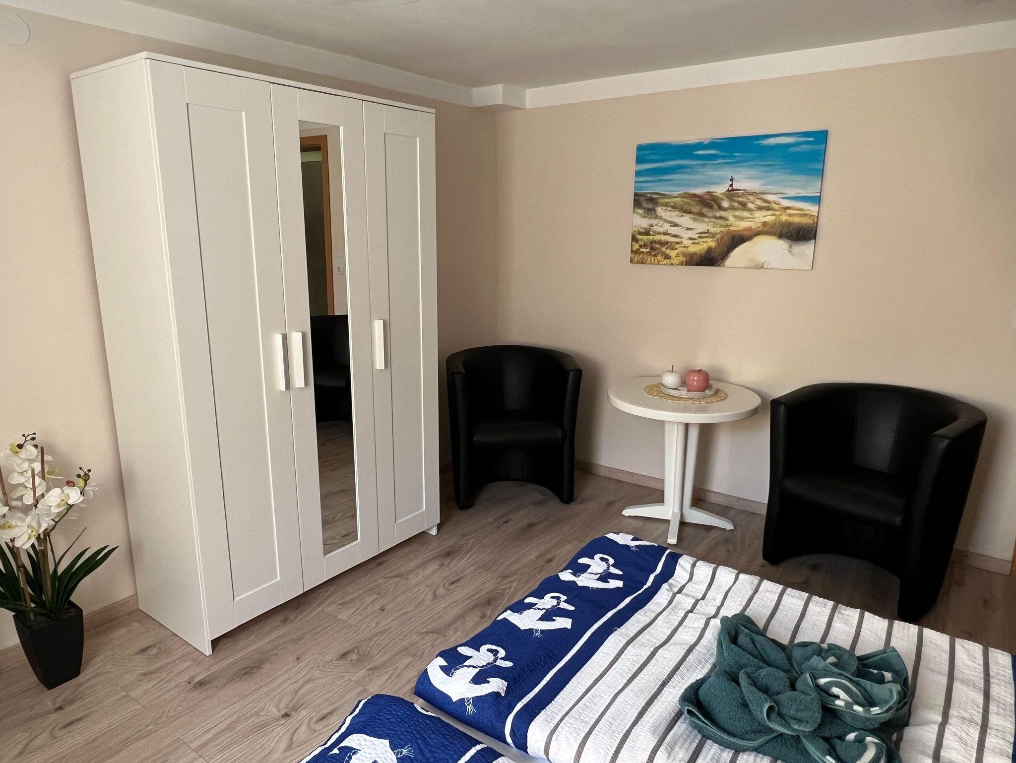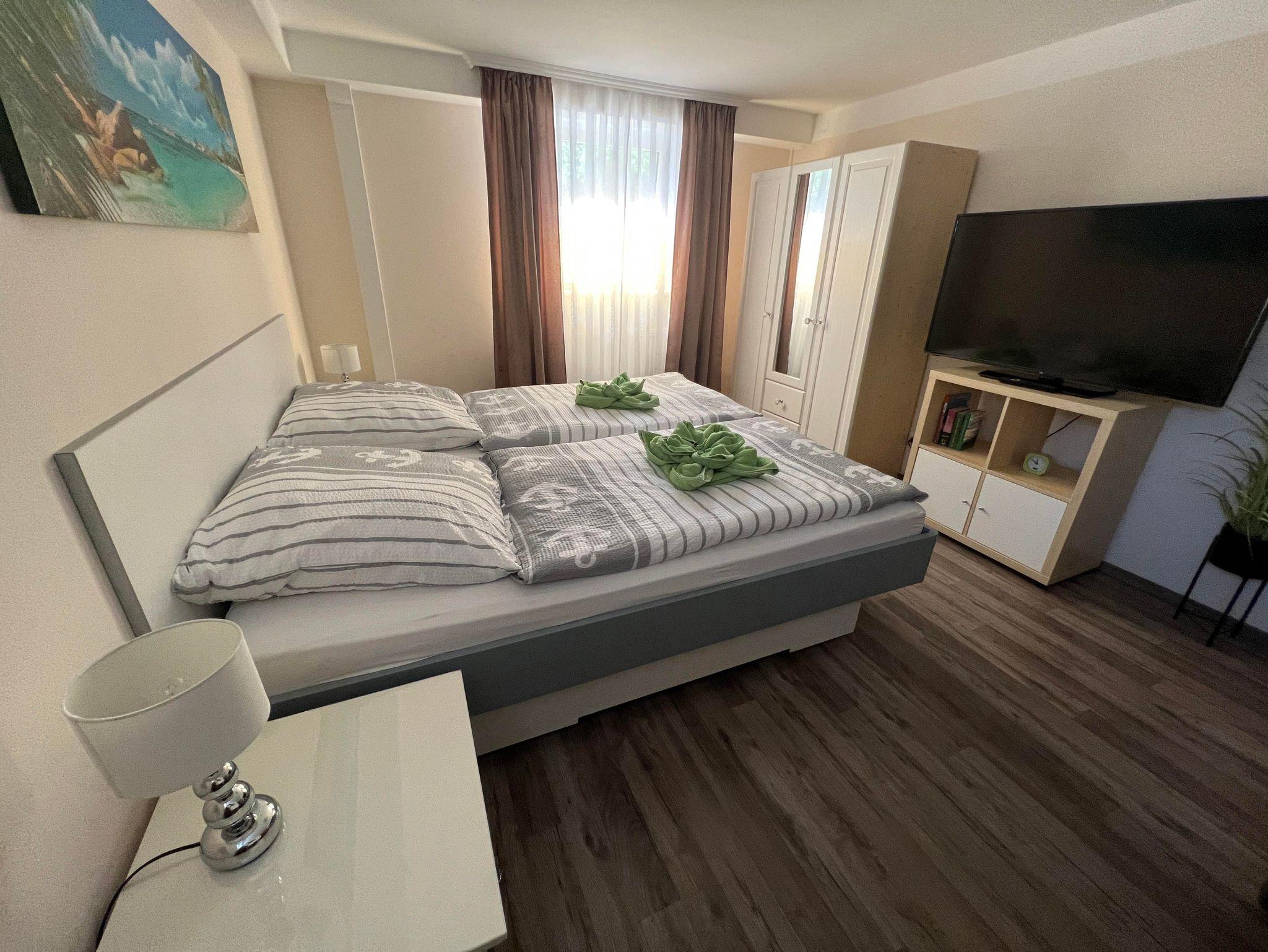 Die Ferienwohnung liegt im Untergeschoss eines Einfamilienhauses (Souterrain) in ruhige Lage und hat einen separaten Eingang. Die Wohnung besteht aus 3 Schlafzimmern, 2 Zimmer mit Doppelbetten und 1 Zimmer mit Einzelbett , einer Dusche/WC und Einbauküche. Alle Schlafzimmer haben Satelliten TV. Die Wohnung verfügt über einen Parkplatz auf dem Grundstück, eine Terrasse und einen Grillplatz. Fahrräder können in der abschließbaren Garage abgestellt werden.