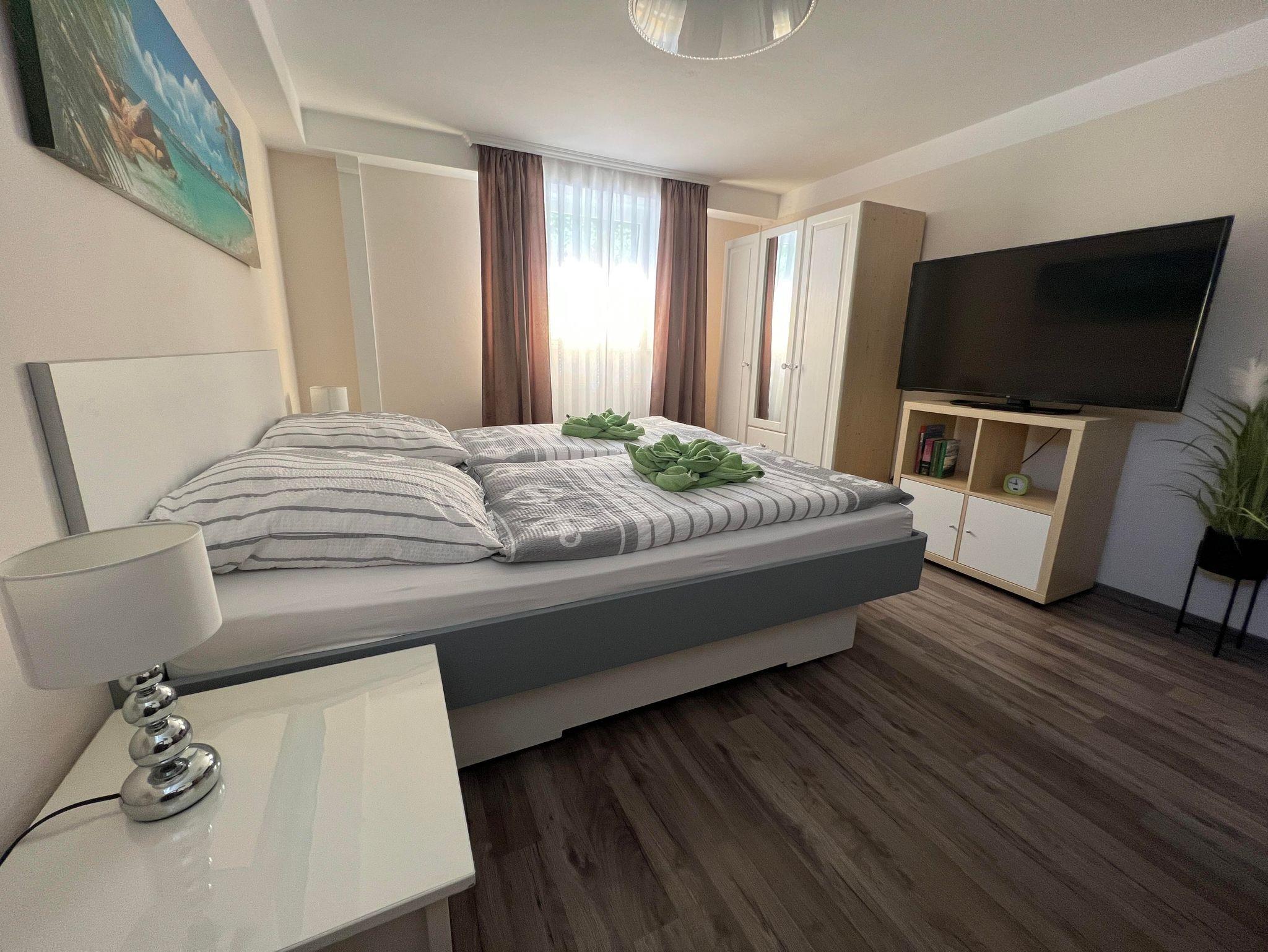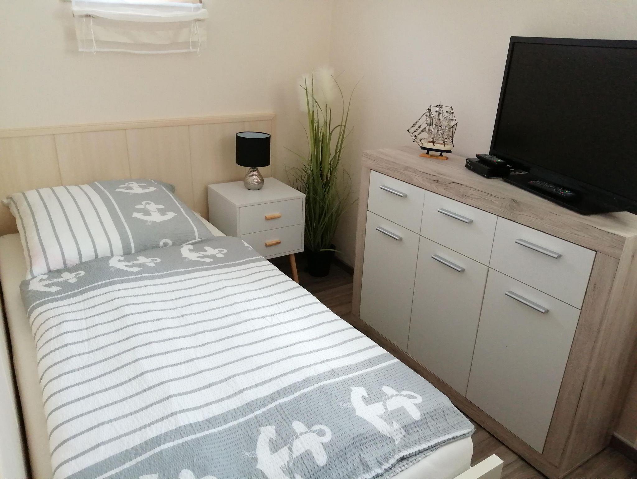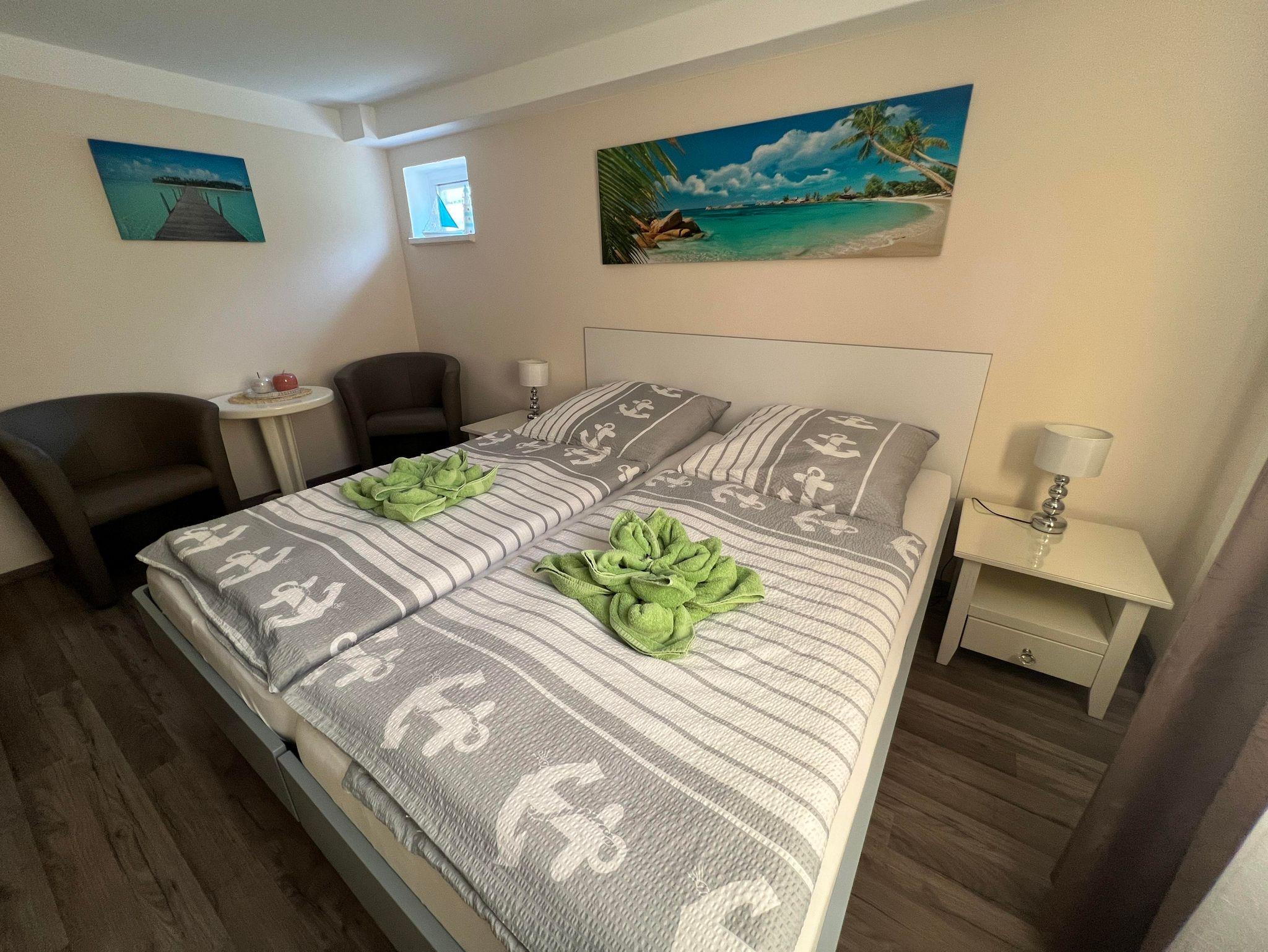 Die Ferienwohnung liegt im Untergeschoss eines Einfamilienhauses (Souterrain) in ruhige Lage und hat einen separaten Eingang. Die Wohnung besteht aus 3 Schlafzimmern, 2 Zimmer mit Doppelbetten und 1 Zimmer mit Einzelbett , einer Dusche/WC und Einbauküche. Alle Schlafzimmer haben Satelliten TV. Die Wohnung verfügt über einen Parkplatz auf dem Grundstück, eine Terrasse und einen Grillplatz. Fahrräder können in der abschließbaren Garage abgestellt werden.