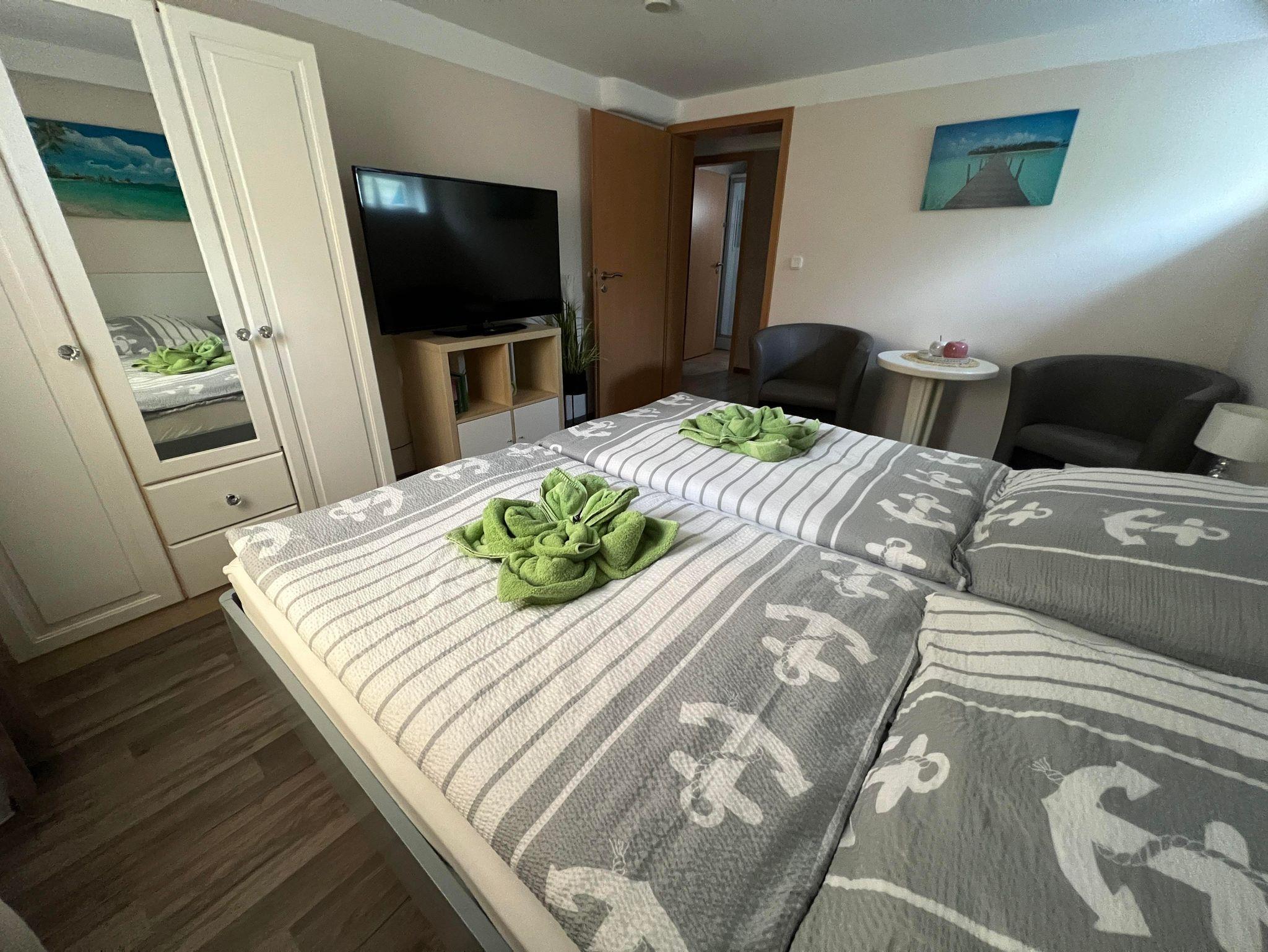 Die Wohnung besteht aus 3 Schlafzimmern, 2 Zimmer mit Doppelbetten,1 Zimmer mit Einzelbett , einem Duschbad / WC, komplette Einbauküche mit Backofen, Kühlschrank, Geschierspülmaschine,Kaffeemaschine, Wasserkocher, Mikrowelle und Toaster.Ferienwohnung mit Internet Zugang.