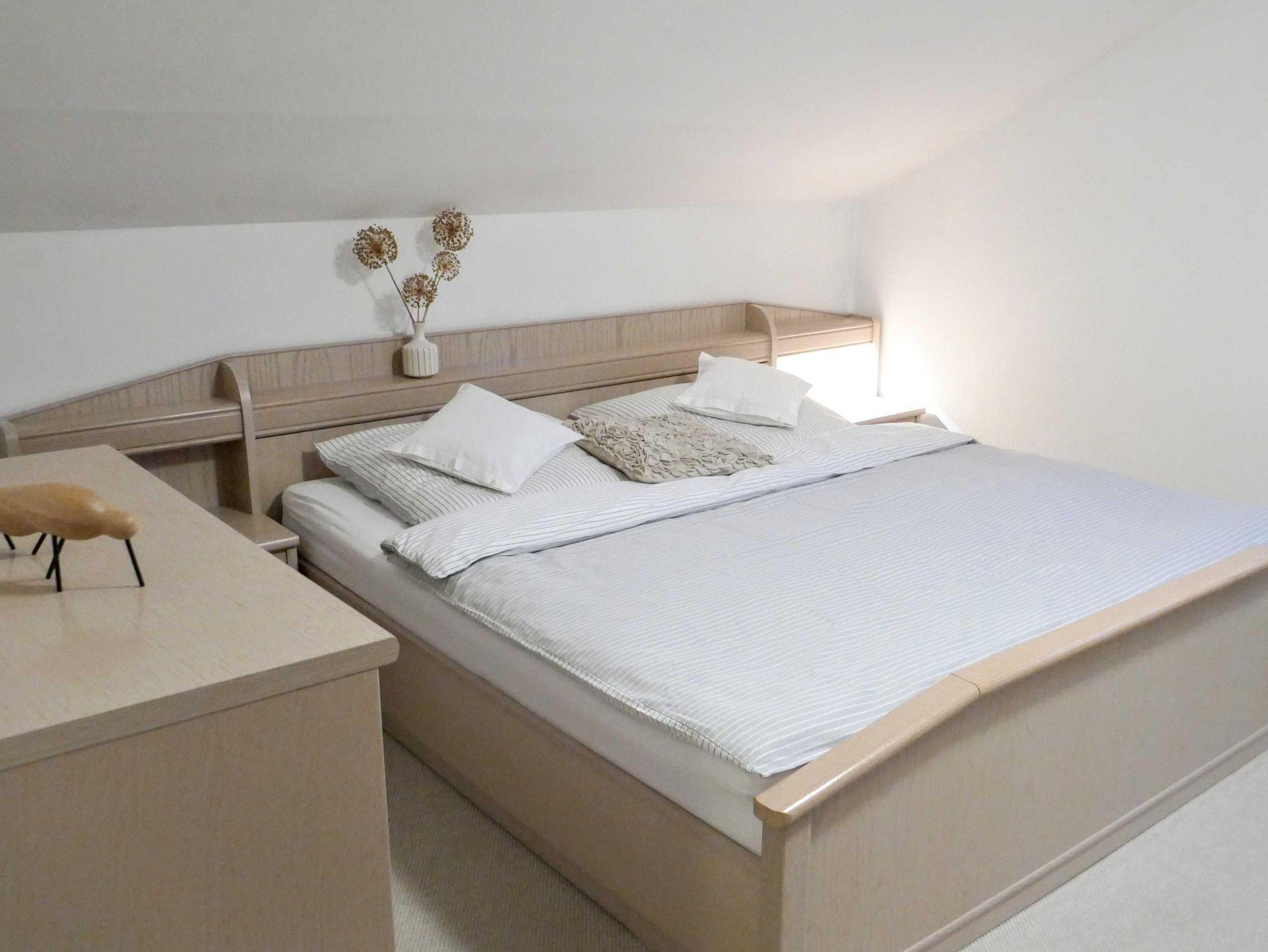 Die beiden Schlafzimmer verfügen über ein Doppelbett, bzw. zwei Einzelbetten und ein Kinderbett (70*150)