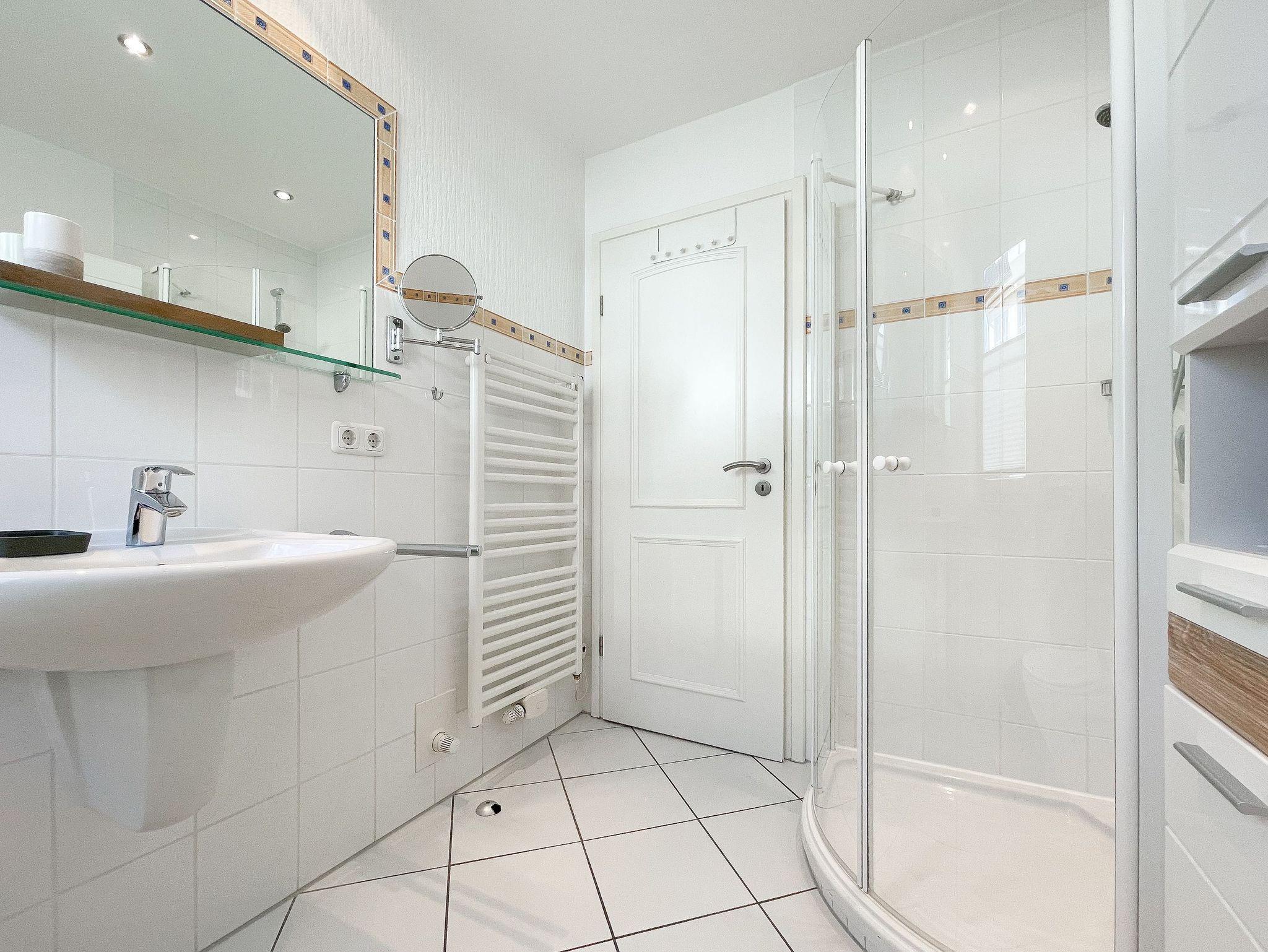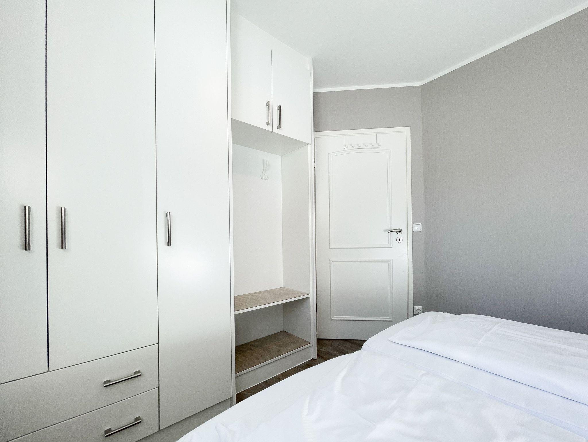 Es erwartet Sie eine gepflegte Ferienwohnung mit zwei separaten Schlafzimmern, die mit Doppelbetten (180x200 und 140x200) und Verdunkelungsvorhängen ausgestattet sind und ein helles Duschbad mit Fenster und Handtuchwärmer. Das Wohnzimmer ist komfortabel mit einer Couchgarnitur und einer integrierten Essecke für 4 Personen eingerichtet. TV, Hifi Anlage und kostenloses WLAN stehen zur Verfügung. Die offene Einbauküche ist gut ausgestattet. Dank großer Fensterflächen sind die Räumlichkeiten hell und freundlich. Als idealer Rückzugsort[nbsp][nbsp]während eines entspannten Urlaubs eignet sich die großzügige, umlaufende Sonnenterrasse in Südausrichtung. Das Haus verfügt selbstverständlich über einen Aufzug. Zur Wohnung gehört ein Stellplatz auf dem Grundstück. Ein Fahrradständer ist vorhanden.