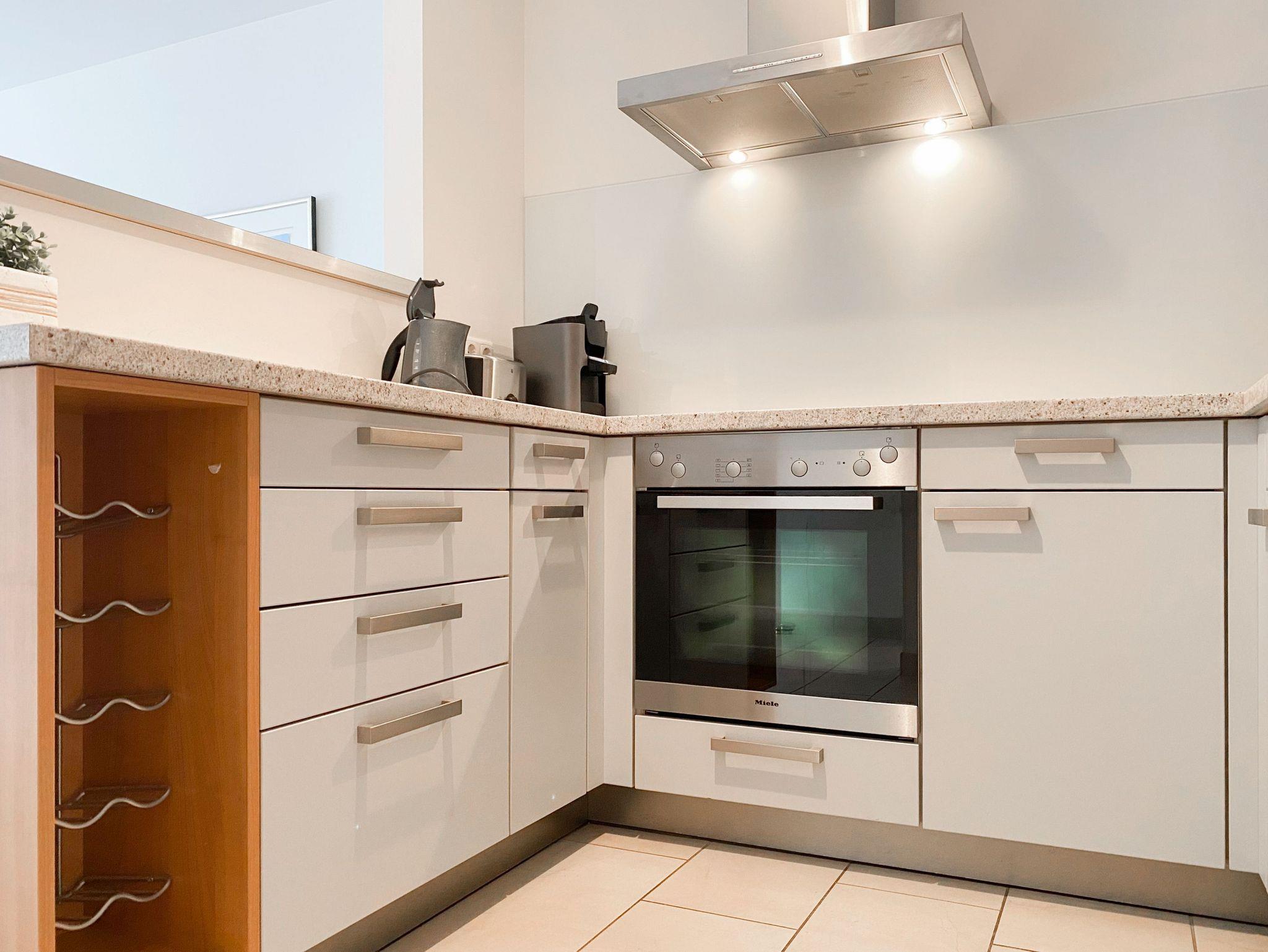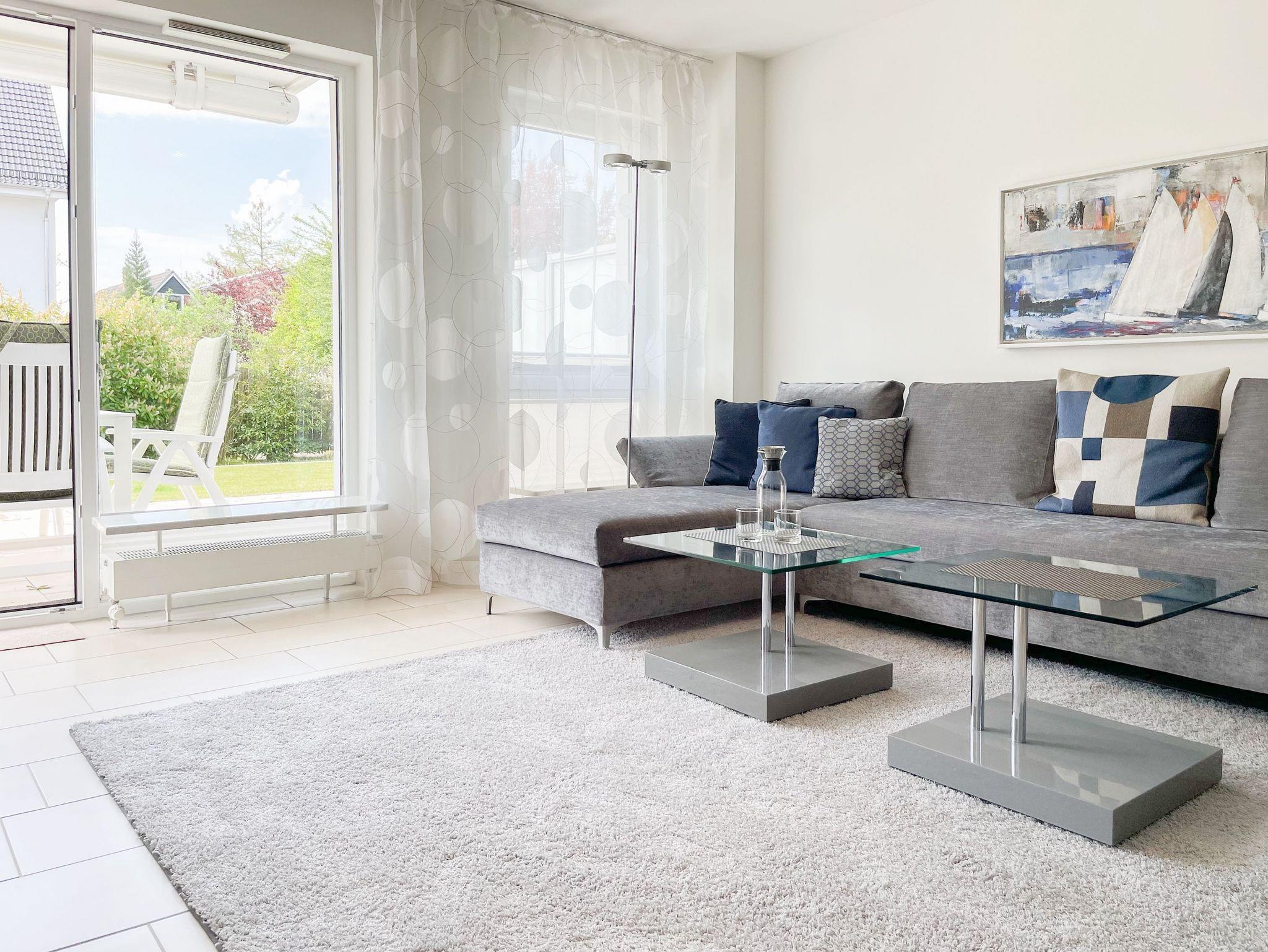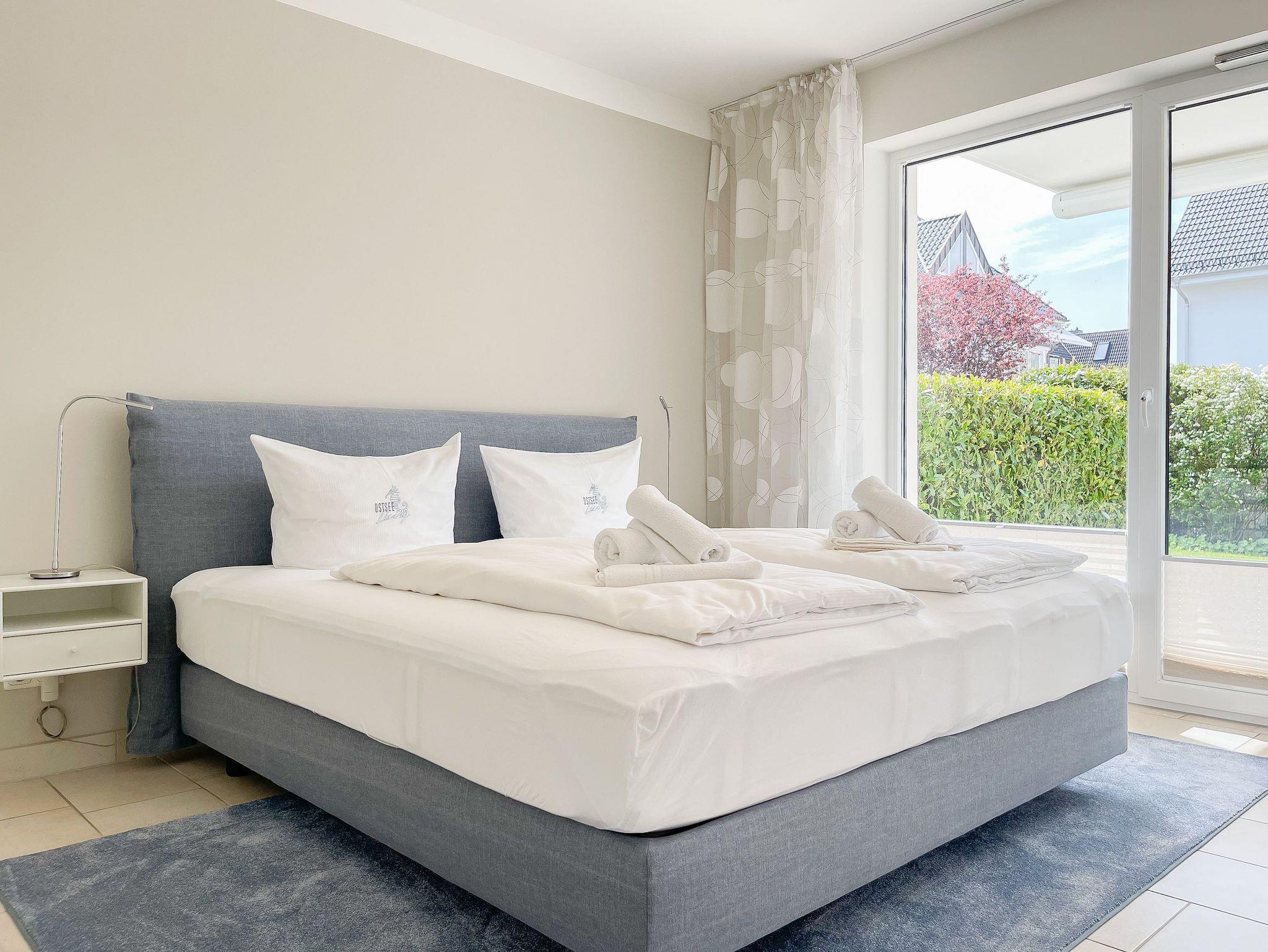 Bei der Ausstattung der Wohnung wurde viel Wert auf hochwertige Materialien und exklusives Mobiliar gelegt. Große, bodentiefe Fensterelemente (mit elektrischen Außenjalousien versehen) sorgen für helle, sonnige Wohnräume.[nbsp] Die 70 qm große Wohnung bietet[nbsp] viel Platz für 2 Personen. Es erwartet Sie ein großzügiger Wohnbereich mit hochwertiger Couchgarnitur, TV, DVD Player, Stereo Anlage, DSL Anschluß und WLAN, ein angrenzender Essbereich für 4 Personen und eine bestens ausgestattete offene Miele Einbauküche, die über Backofen, Ceranfeld und Geschirrspüler verfügt. Im geräumigen Schlafzimmer befindet sich ein Doppelbett (180x200) sowie ein großer Schrank mit viel Staufläche. Das Duschbad ist modern und hochwertig. Die schöne, 30 qm große Südwest Terrasse ist sowohl vom Wohn- als auch vom Schlafraum zu betreten und mit einer elektrischen Markise versehen. Genießen Sie zu jeder Tageszeit die Sonne und entspannen auf den komfortablen Gartenmöbeln.