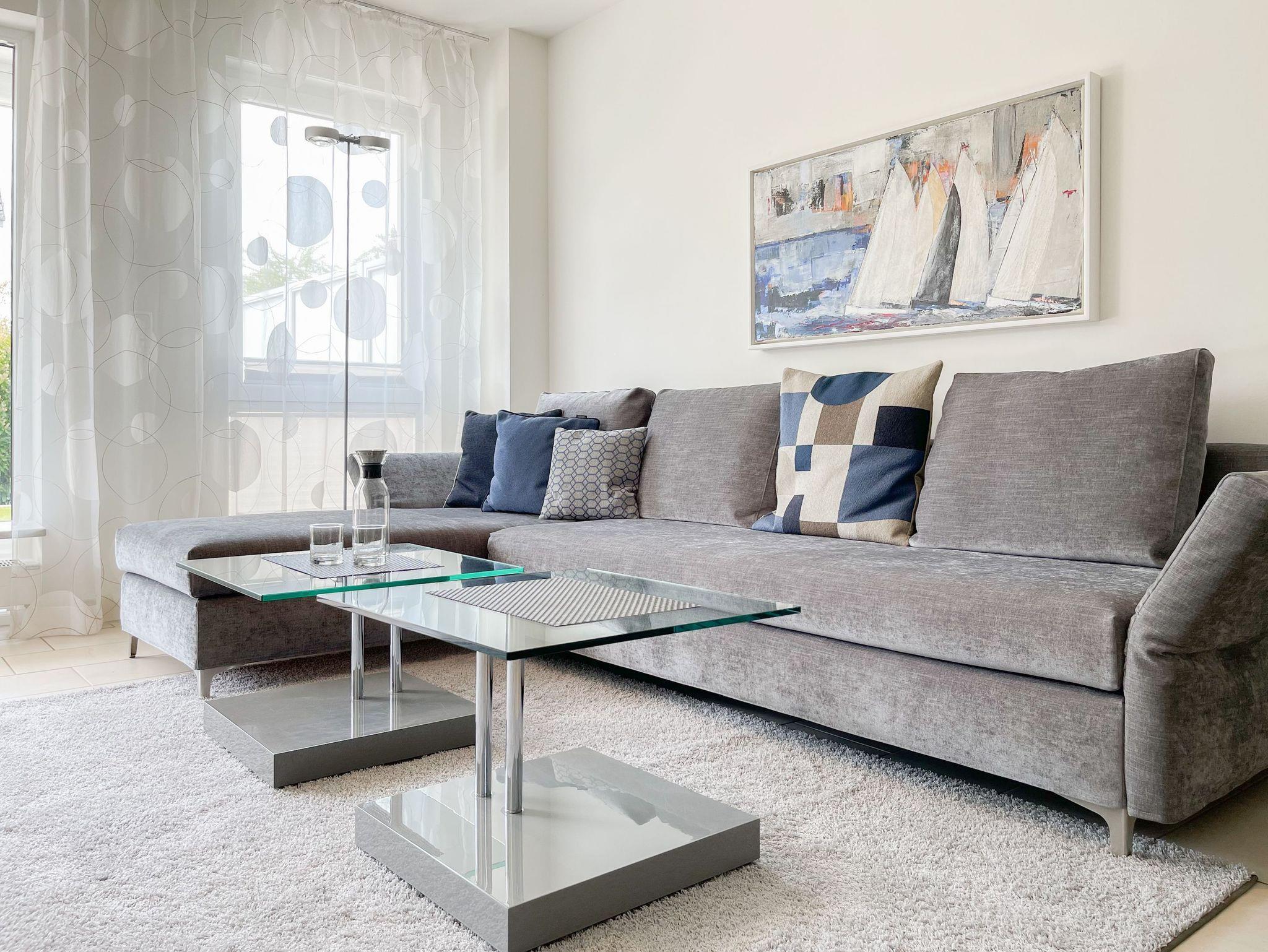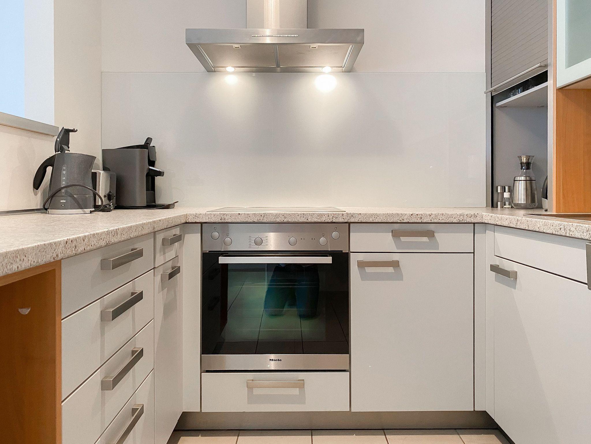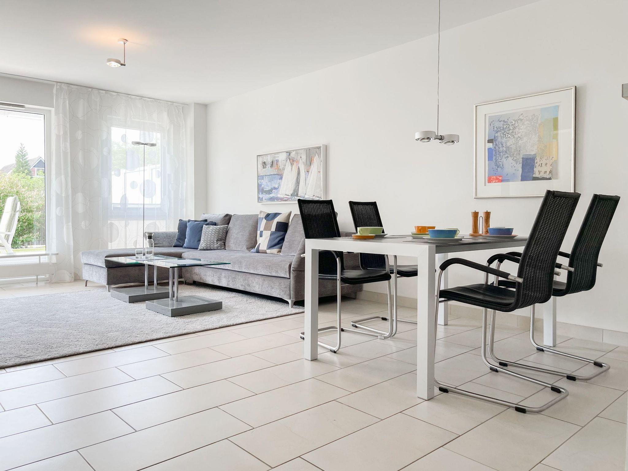 Bei der Ausstattung der Wohnung wurde viel Wert auf hochwertige Materialien und exklusives Mobiliar gelegt. Große, bodentiefe Fensterelemente (mit elektrischen Außenjalousien versehen) sorgen für helle, sonnige Wohnräume.[nbsp] Die 70 qm große Wohnung bietet[nbsp] viel Platz für 2 Personen. Es erwartet Sie ein großzügiger Wohnbereich mit hochwertiger Couchgarnitur, TV, DVD Player, Stereo Anlage, DSL Anschluß und WLAN, ein angrenzender Essbereich für 4 Personen und eine bestens ausgestattete offene Miele Einbauküche, die über Backofen, Ceranfeld und Geschirrspüler verfügt. Im geräumigen Schlafzimmer befindet sich ein Doppelbett (180x200) sowie ein großer Schrank mit viel Staufläche. Das Duschbad ist modern und hochwertig. Die schöne, 30 qm große Südwest Terrasse ist sowohl vom Wohn- als auch vom Schlafraum zu betreten und mit einer elektrischen Markise versehen. Genießen Sie zu jeder Tageszeit die Sonne und entspannen auf den komfortablen Gartenmöbeln.