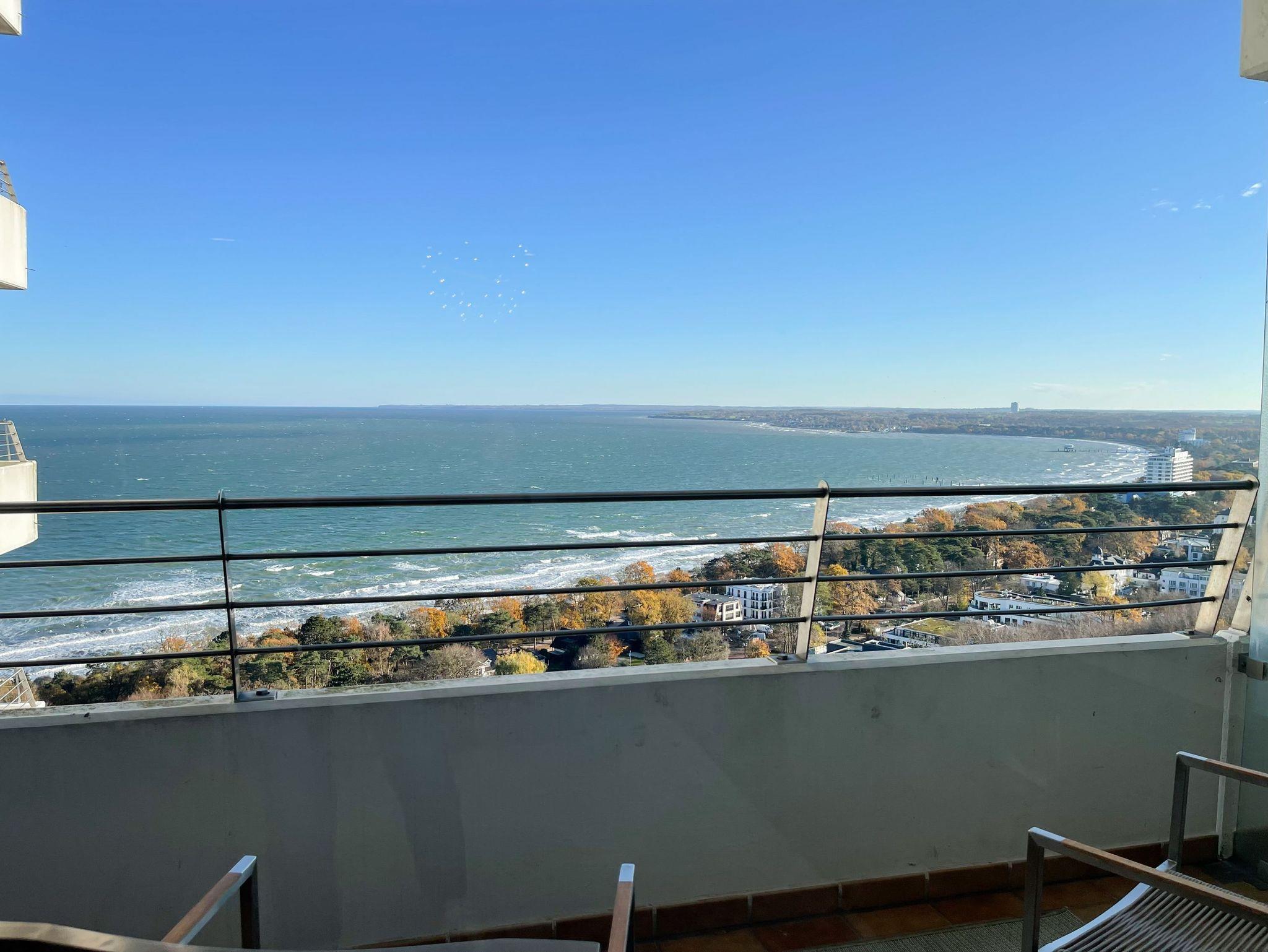 Die traumhafte Ferienwohnung Ocean View bietet auf 90 qm höchsten Wohnkomfort mit einer luxuriösen Ausstattung und einem stilvollen Interieur. Der weitläufige Sonnenbalkon über Eck ist mit Gartenmöbeln, Sonnenliegen und einer elektrischer Markise ausgestattet und sowohl vom Wohnbereich als auch von beiden Schlafzimmern zugänglich. Genießen Sie tagsüber das traumhafte Meerblickpanorama aus nahezu jedem Raum und bei Dunkelheit die besondere Atmosphäre der beleuchteten Lübecker Bucht. Der in warmen, hellen Farben gehaltene Wohn- Essbereich verfügt neben dem phantastischen Meerblick über eine äußerst hochwertige Einrichtung. Es steht ein gemütliches XXL Sofa, TV und WLAN zur Verfügung. Der anschließende Essbereich bietet ausreichend Platz für 4 Personen und die integrierte Design Küche läßt keine Wünsche offen. Es stehen 2 Schlafzimmer zur Verfügung, die beide ebenfalls einen wunderschönen Meerblick bieten. Die Fenster sind mit Verdunkelungsvorhängen bzw. Plissee und Rollo versehen. Das große Schlafzimmer verfügt über eine Boxspringbett (180x200) und einen geräumigen Kleiderschrank, das kleine Schlafzimmer ist mit einem Einzel- sowie einem Etagenbett ausgestattet und Stauraum für die Urlaubsgarderobe bietet ein großer Einbauschrank, der sich im Flurbereich vor den Schlafräumen befindet. Das moderne Bad verfügt über Waschtisch und eine[nbsp] Badewanne mit Dusche. Eine Waschmaschine ist im Einbauschrank im Flur untergebracht. Ein fester PKW Stellplatz in der Hotelgarage (Einfahrtshöhe 1,90/kein Aufzug) ist inklusive. Bei Verlust der Parkkarte ist Ersatz zu leisten. Ein Fahrtstuhl im Gebäude ist vorhanden.