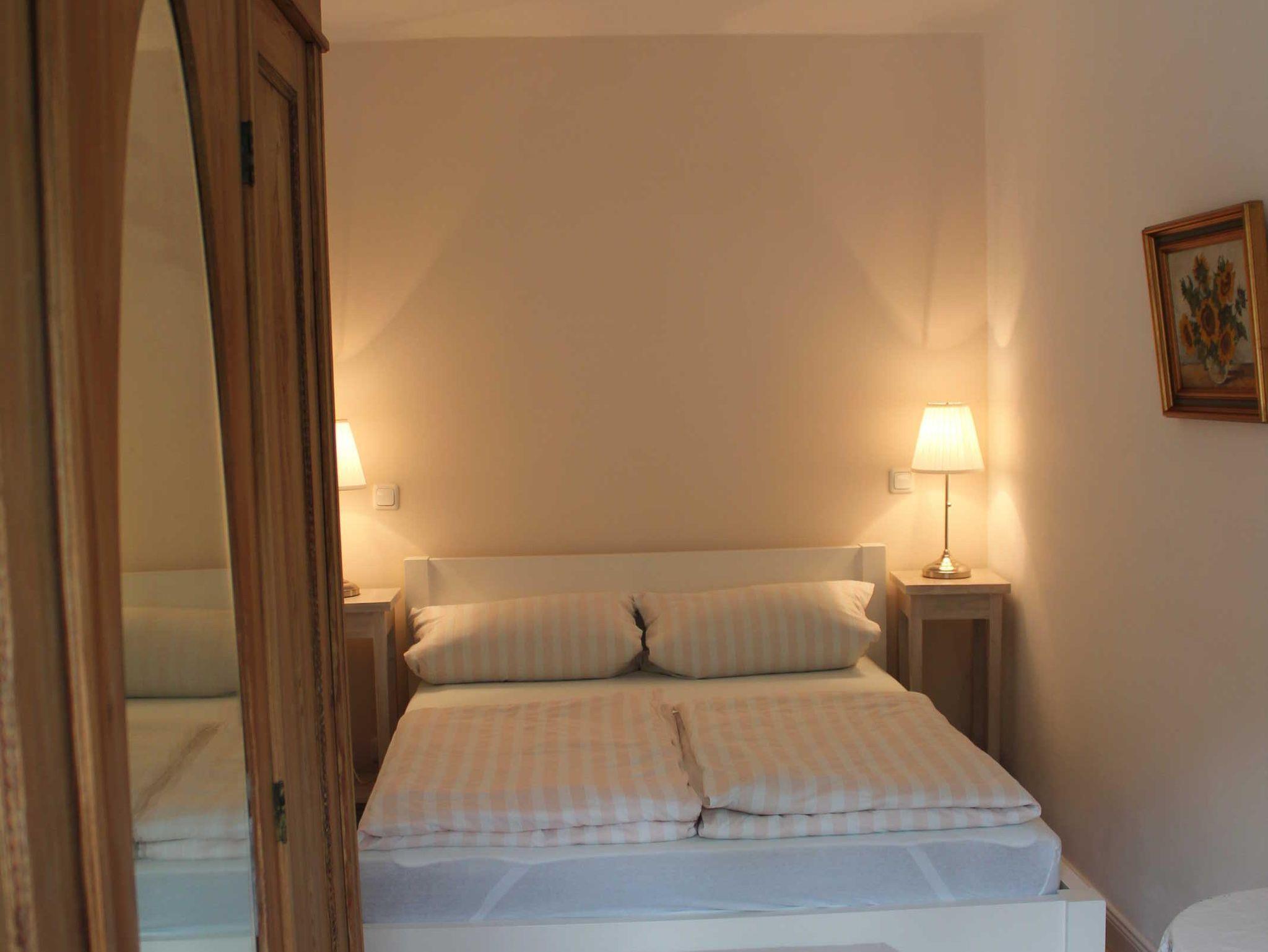 Die Wohnung befindet sich im 1.Stock und verfügt über ein helles gemütliches Wohnzimmer mit Parkettfussboden. Außerdem gibt es einen Flachbildfernseher, Internet und eine Stereoanlage. Vom Wohnzimmer aus kommt man auf den Balkon in Südwest-Lage, auf dem ab mittags die Sonne scheint. In dem Schlafzimmer, das ebenfalls über Parkettfussboden verfügt, steht ein komfortables Doppelbett (1,40m x 2,00m) mit Lattenrost. Die moderne, helle Küche ist mit Geschirrspüler, Mikrowelle und Waschmaschine (Miele) ausgestattet. Des Weiteren befindet sich eine kleine gemütliche Essecke in der Küche. Es ist ein gesicherter Parkplatz auf Anfrage verfügbar. Preis pro Tag 10,00€. Ein Kinderhochstuhl und ein Reisebett befinden sich in der Wohnung (Kinder bis 4 Jahre möglich).