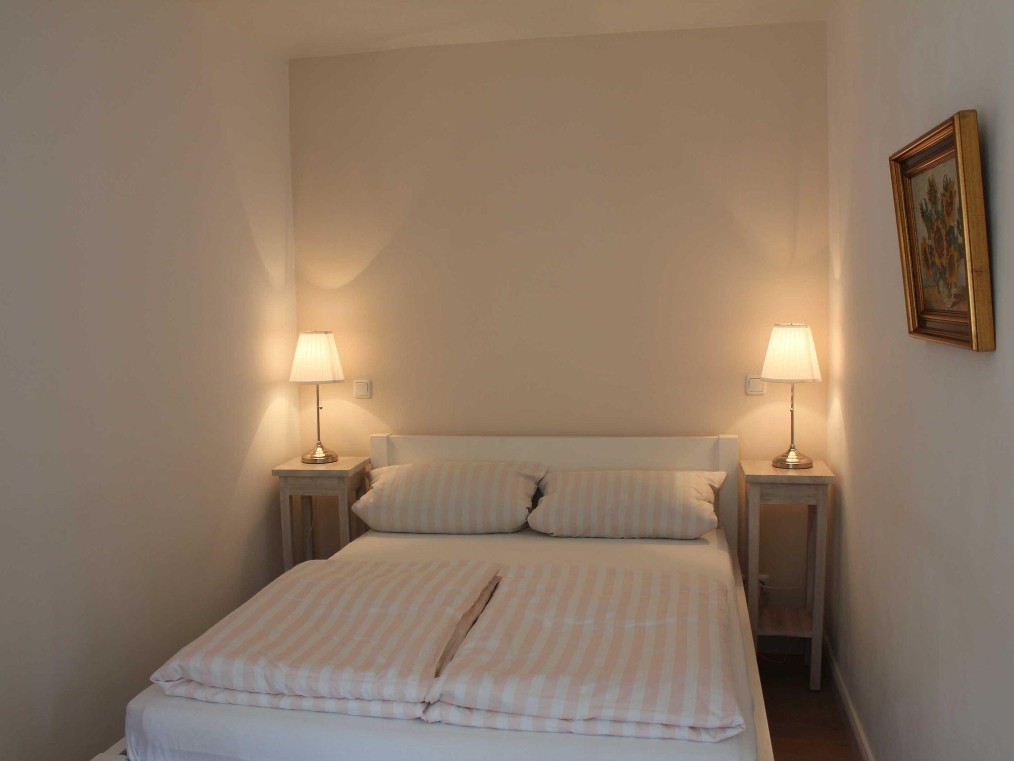 Die Wohnung befindet sich im 1.Stock und verfügt über ein helles gemütliches Wohnzimmer mit Parkettfussboden. Außerdem gibt es einen Flachbildfernseher, und eine Stereoanlage. Vom Wohnzimmer aus kommt man auf den Balkon in Südwest-Lage, auf dem ab mittags die Sonne scheint. In dem Schlafzimmer, das ebenfalls über Parkettfussboden verfügt, steht ein komfortables Doppelbett (1,40m x 2,00m) mit Lattenrost. Es kann ein Kinderreisebett im Schlafzimmer( bis 4 Jahre ) aufgestellt werden. Die moderne, helle Küche ist mit Geschirrspüler, Mikrowelle und Waschmaschine (Miele) ausgestattet. Des Weiteren befindet sich eine kleine gemütliche Essecke in der Küche. Das Bad verfügt über eine Dusche.