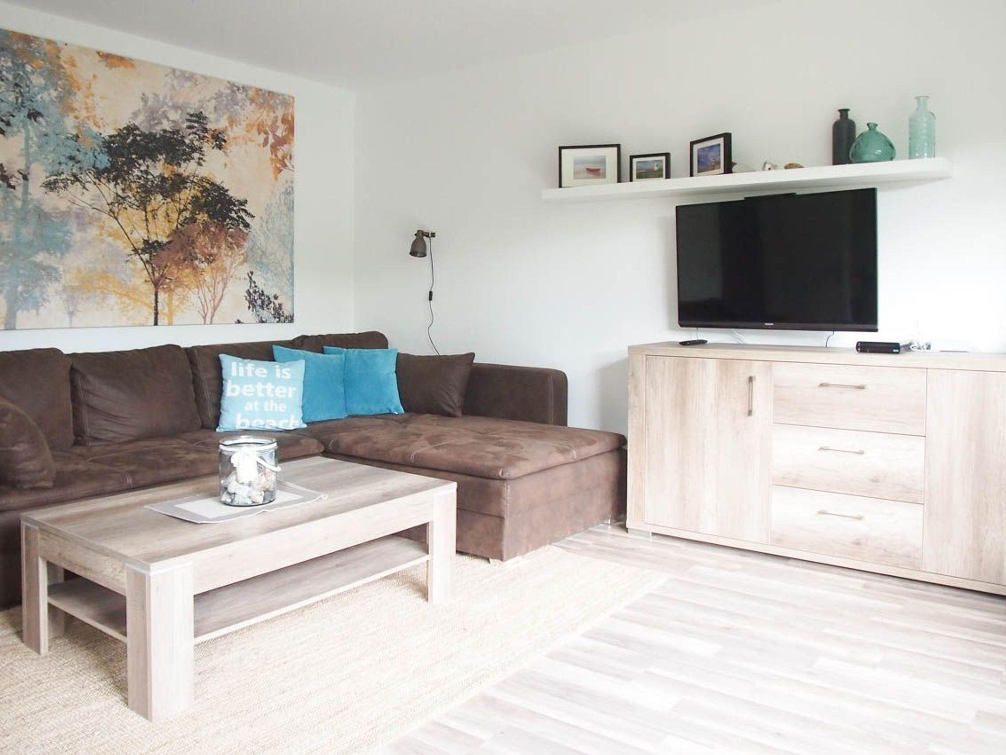 Im Erdgeschoss befindet sich ein geräumiger Wohnbereich mit Leseecke und Kaminofen, ein großzügiger Essbereich für 8 Personen sowie eine moderne Einbauküche, in der neben allen technischen Geräten auch eine Waschmaschine und ein Trockner integriert sind. Zwei Schlafzimmer, eines mit direktem Terrassenzugang und Doppelbett (180x200), ein weiteres mit einem Einzelbett mit Auszug (160x200) und ein modernes, helles Duschbad sind ebenfalls auf dieser Ebene untergebracht. Im Obergeschoss befinden sich 3 weitere Schlafzimmer, eines mit Doppelbett (180x200) und Kinderbett plus Wickeltisch, eines mit zwei Einzelbetten (90x200), ein weiteres mit einem Einzelbett mit Auszug (160x200). Ein großzügiges Bad mit Badewanne und Dusche sowie ein separates Gäste WC stehen im Obergeschoss zur Verfügung. Im Haus befinden sich drei TV.