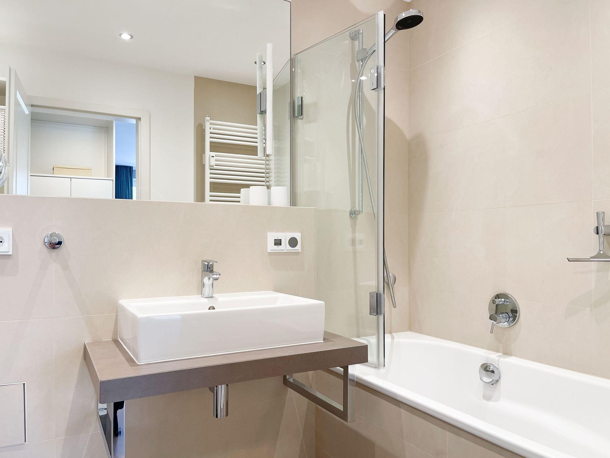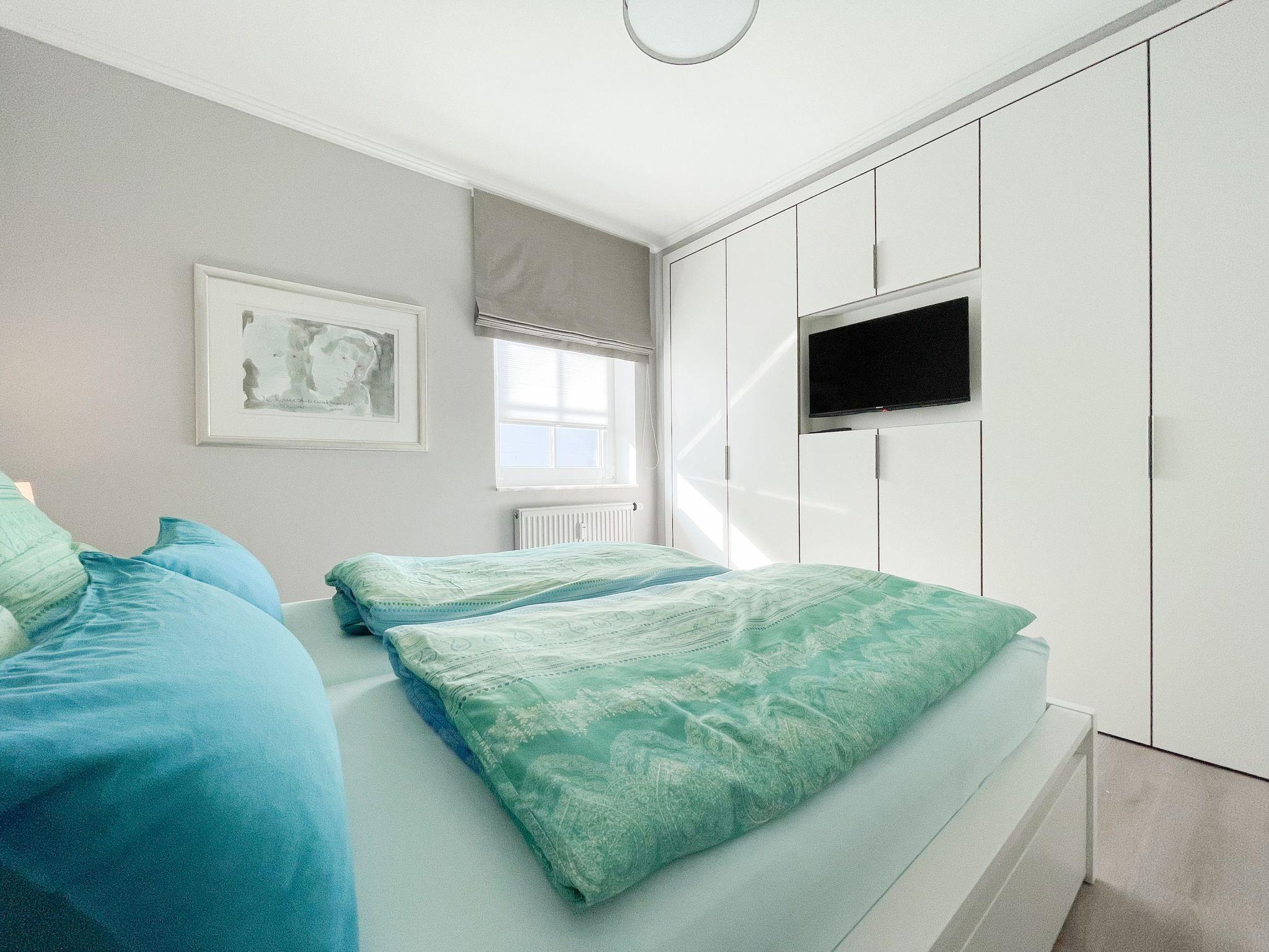 Frisch und aufwendig renoviert und äußerst geschmackvoll eingerichtet in 2024, erwartet Sie der Küstenschatz, um den wohlverdienten Urlaub in großartigem Ambiente zu verbringen. Der Innenarchitektin ist es gelungen, unter Verwendung warmer Farben, hochwertigem Mobiliar und passgenauen Einbauten einen hohen Wohnstandard zu schaffen, der höchsten Ansprüchen genügt. Ein Highlight ist der großzügige, umlaufende Eckbalkon in Nordwestausrichtung mit herrlichem Blick in den Kurpark, mit Sonnenschein vom Nachmittag bis zum Sonnenuntergang. Der stilvolle Wohnbereich ist mit einem Schlafsofa, TV und Bluetooth-Lautsprecher ausgestattet und der anschließende Essbereich bietet ausreichend Raum für 4 Personen. Die äußerst hochwertige Designküche in perfekter Ausstattung fügt sich wunderbar in den Wohnraum ein und verfügt unter anderem über Spülmaschine, Backofen, Mikrowelle, Cerankochfeld, Radio und vieles mehr. Das Schlafzimmer ist mit einem Doppelbett (160x200) sowie einem passgenauen Einbauschrank mit integriertem TV eingerichtet. Das Fenster lässt sich mittels Rollo verdunkeln. Das moderne Bad ist mit Waschtisch, WC und Duschwanne ausgestattet. WLAN steht selbstverständlich zur Verfügung.