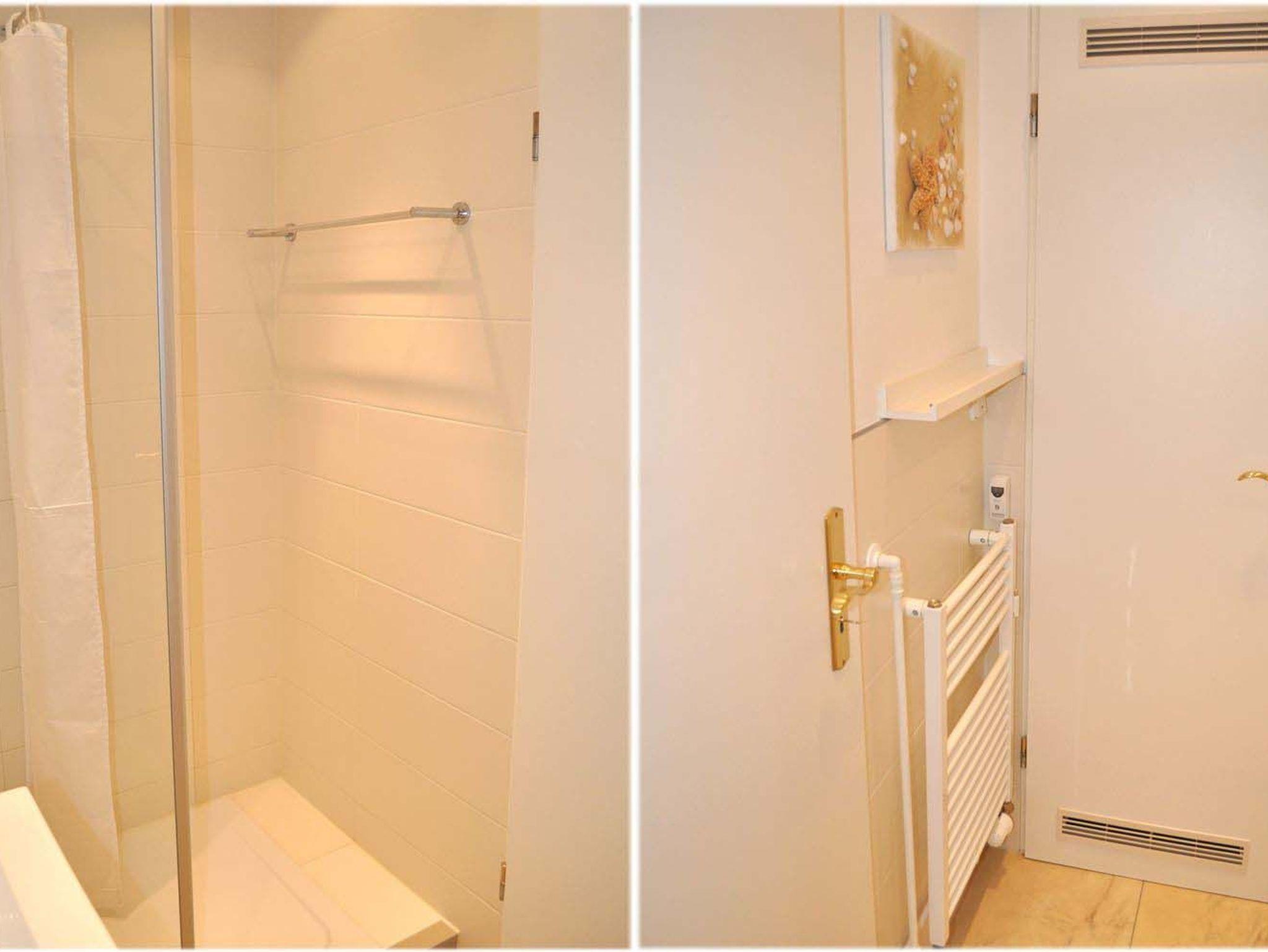 Bad 1: Dusche, Duschkabine, Glastrennwand, Spiegel, Waschtisch mit Unterschrank, WC