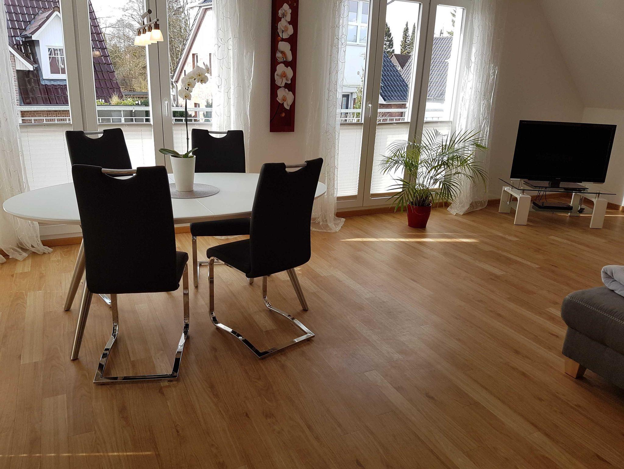 Die großzügig geschnittene 3-Zimmer-Ferienwohnung Meermomente 1 mit 86 qm Größe bietet in der ersten Etage genügend Platz für 4 Personen.