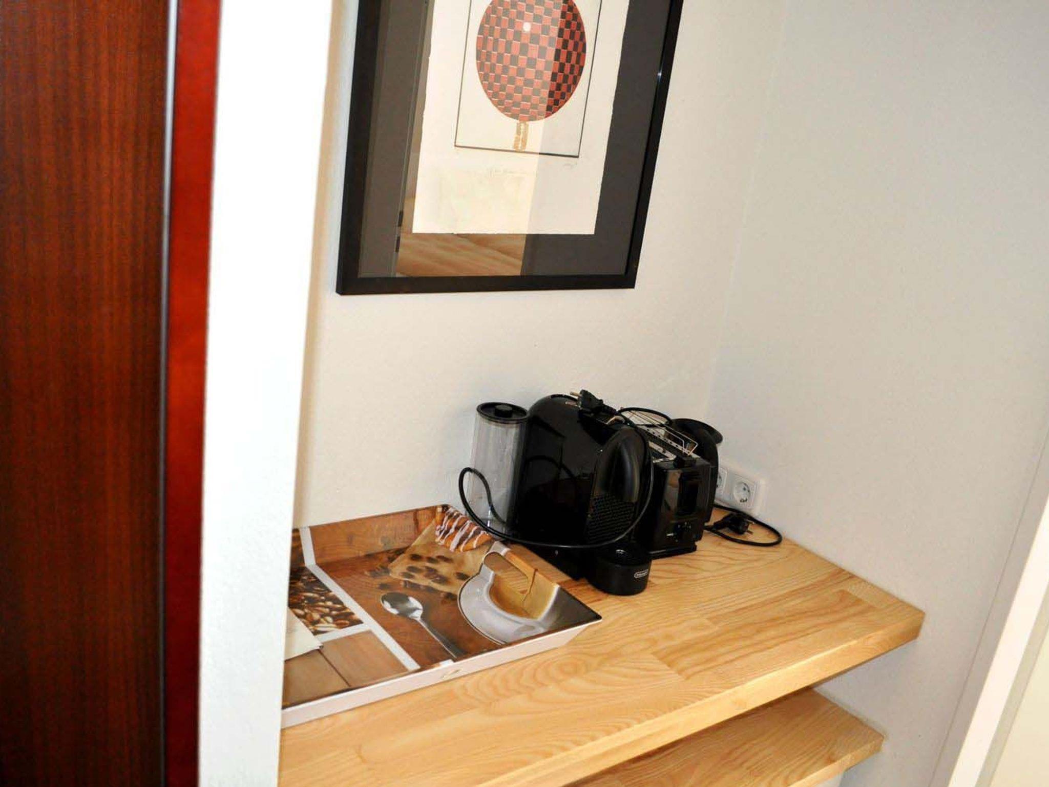 Flur: Kleiderschrank, Nespresso Maschine, Regal, Spiegel, Toaster, Wasserkocher