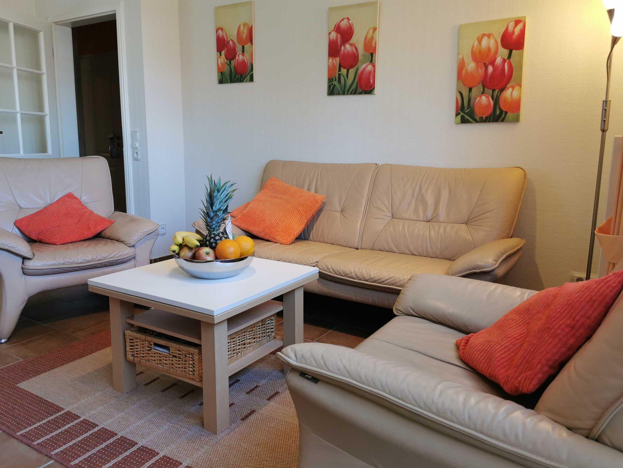 Die Wohnung befindet sich im Erdgeschoss, Kurparkstr. 7, wenige Min. vom Strand. Optimale Aufteilung ca. 72m². Sie ist neuwertig, voll möbliert und mit allem Komfort wie zwei Fernseher mit Radio u. Musiksender versehen. Wohn- und Essbereich mit Ausgang auf die Terrasse mit Strandkorb, Flur, 2 Schlafräume (Untergeschoß mit Fußbodenheizung), gr. Duschbad, Kosmetikspiegel, Einbauküche mit Eßbereich zum Wohnzimmer (Geschirrspüler, Backofen, Ceranfeld, Gefrierfach, Mikrowelle, Teezubehör usw.)Terrakottafliesen, sehr moderne Einrichtung, TV-Überwachung, Kabel-TV, Wlan, Aufzug. Kostenlose Stellplätze u. Fahrradabstellplatz befinden sich auf dem abgeschlossenen Grundstück. Im Haus befindet sich ein Sauna-Wellnessbereich, Waschmaschine,Trockner. Unsere Preise variieren, je nach Saison, zzgl. Endreinigung, zubuchbar Wäschepaket Hund.